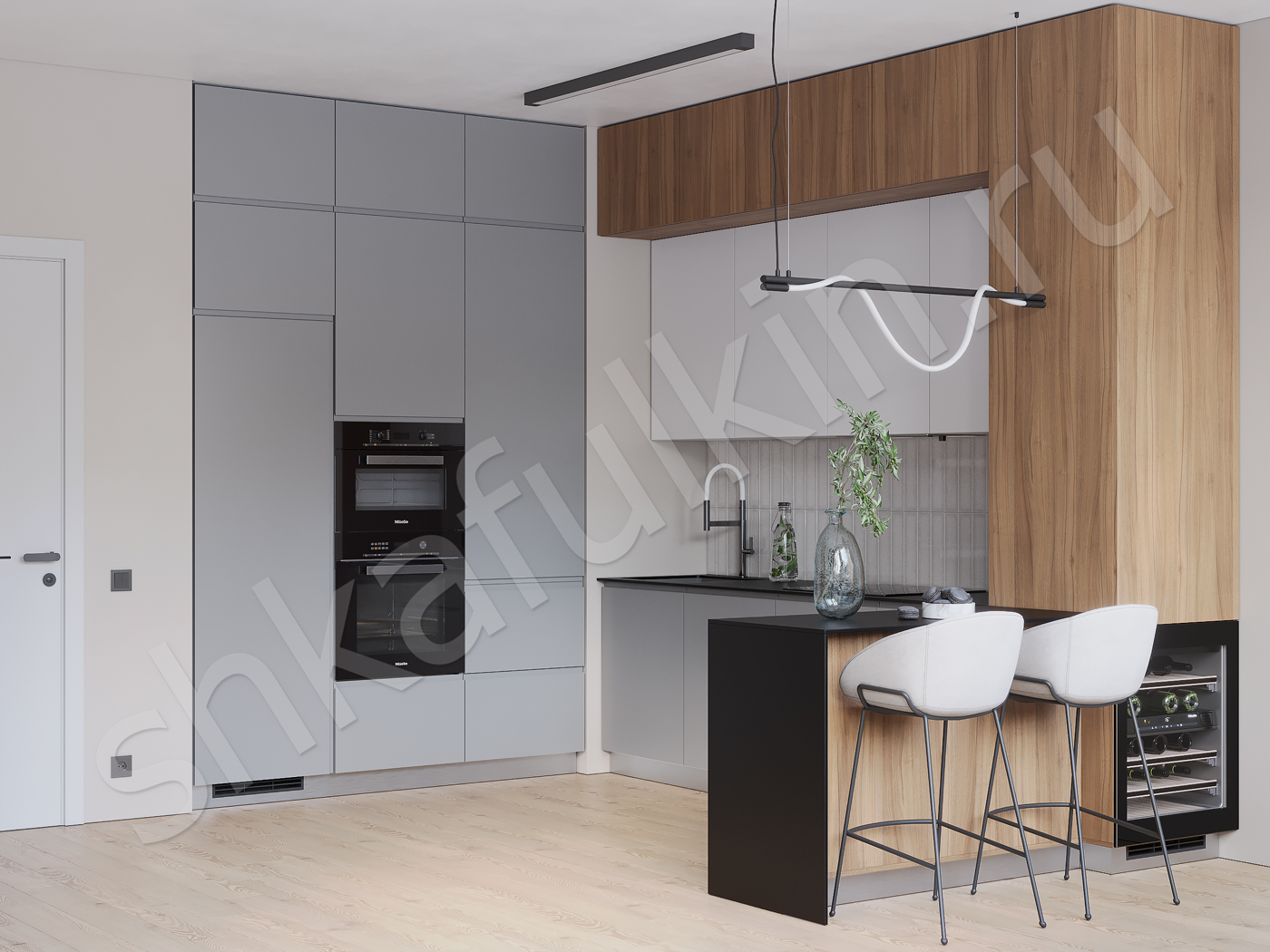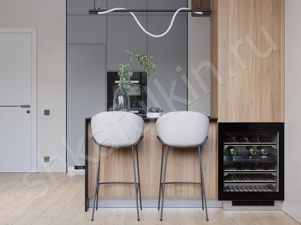 Фасады: МДФ с фрезеровкой покрашенный по NCS / ЛДСП Egger.