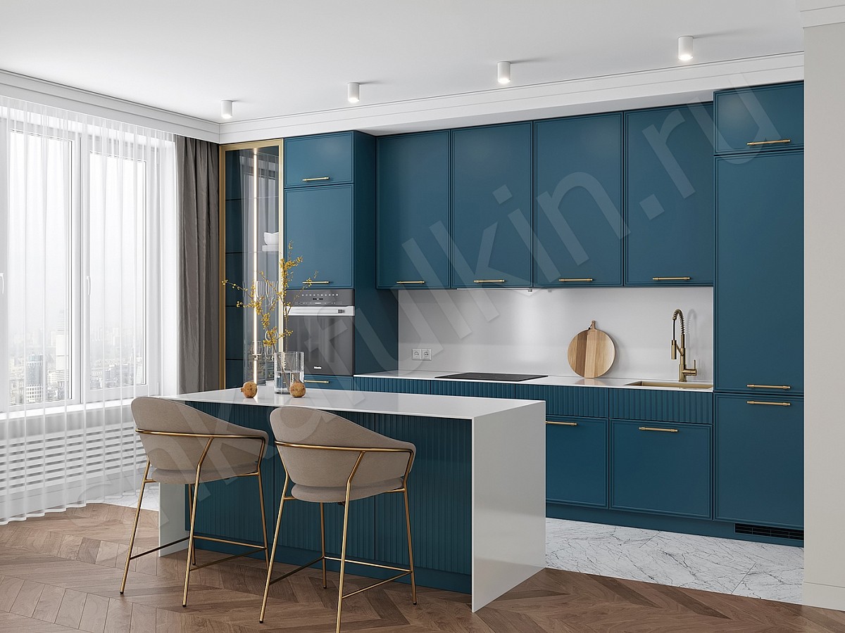 Фасады: МДФ с фрезеровкой, крашенная по NCS.