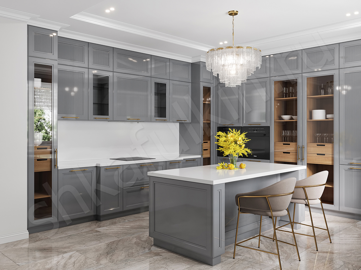 Фасады: МДФ крашенная по NCS глянец.