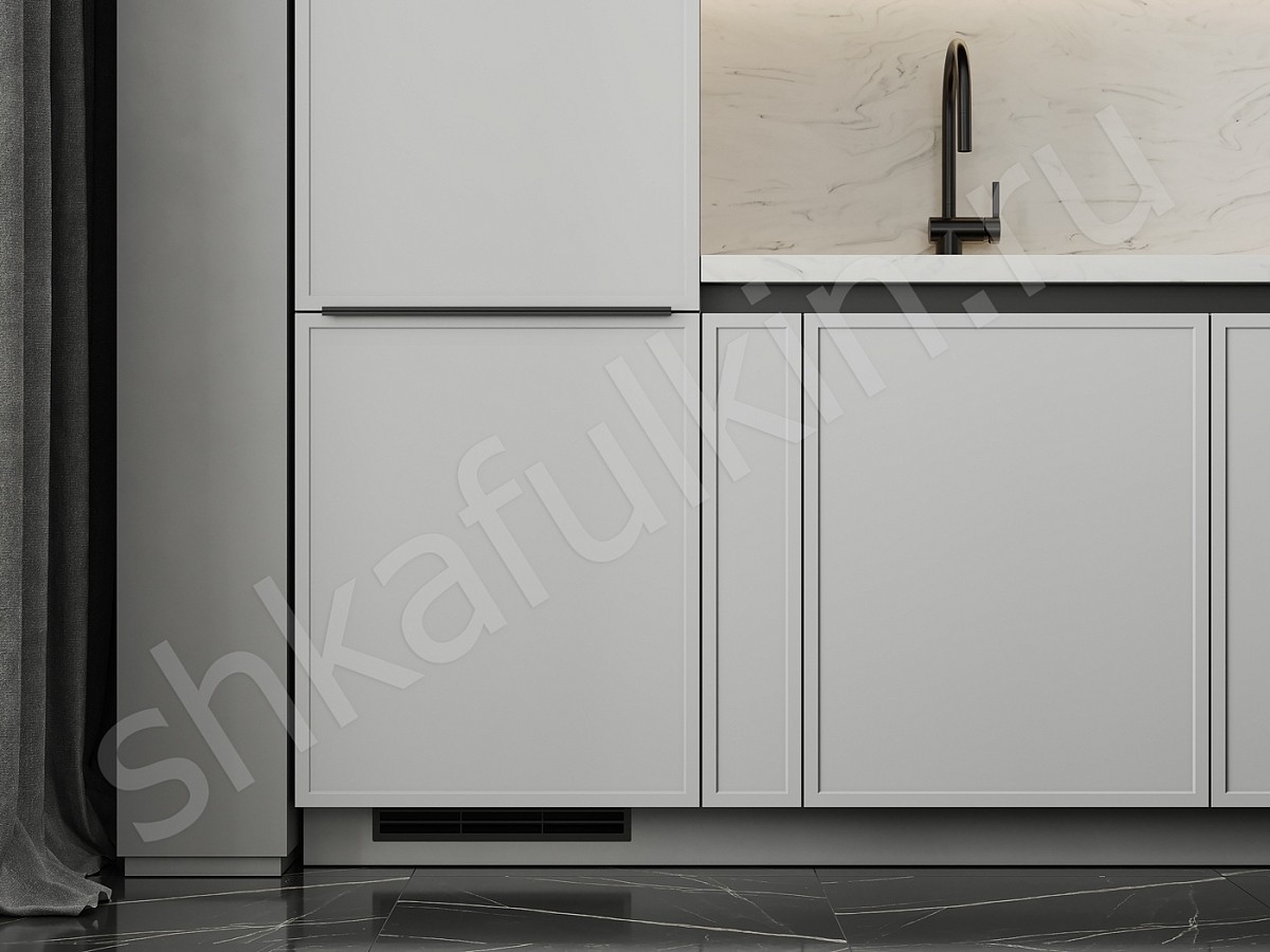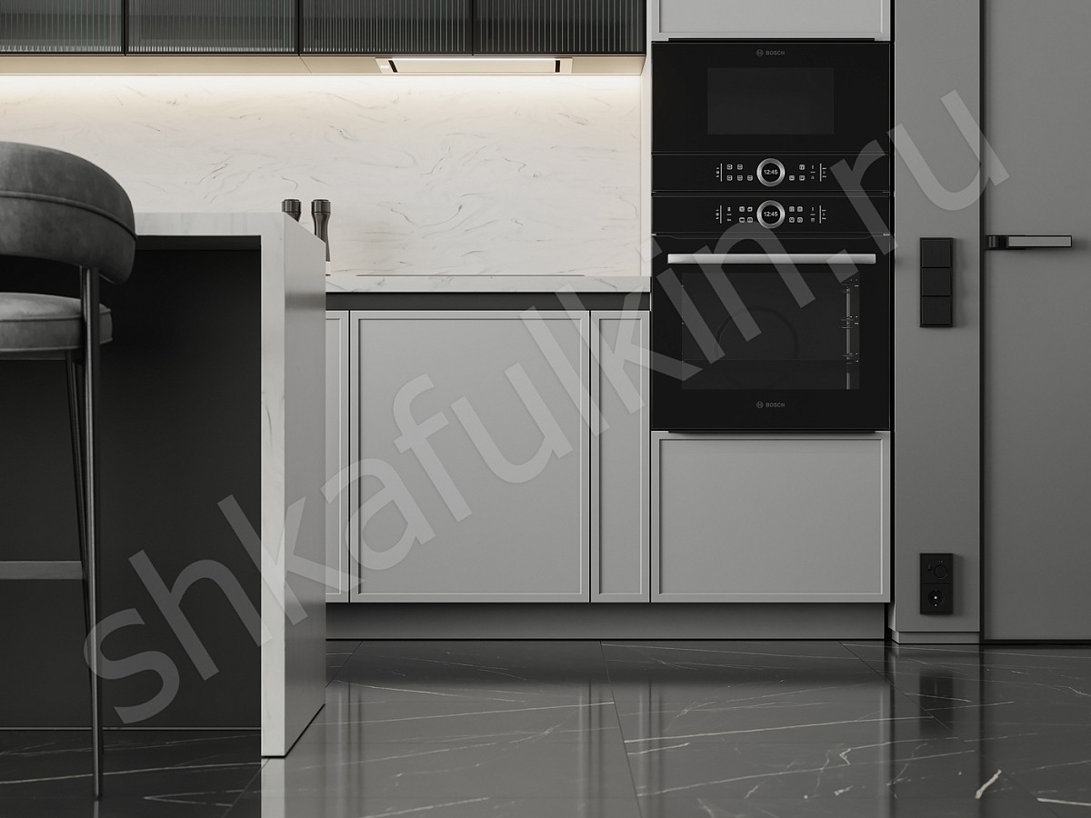 Фасады: МДФ с фрезеровкой, крашенная по NCS/рифленое стекло Moru в профиле ФБМ.