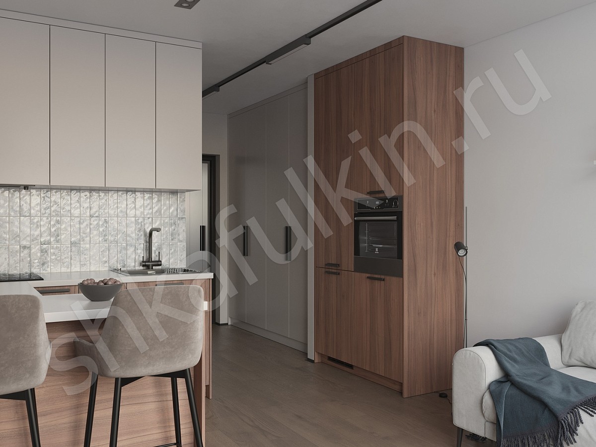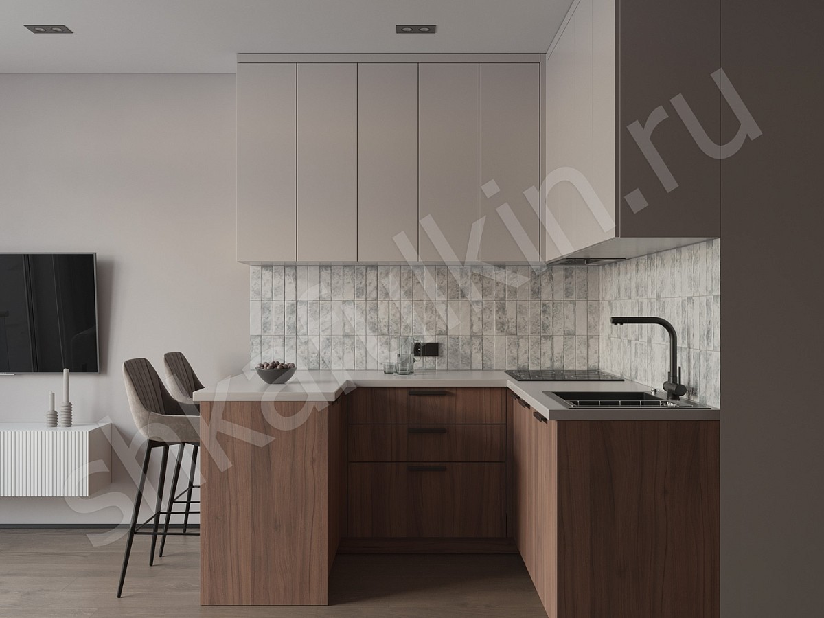 Размеры кухни: 1800/2000/1200х2600х600 мм.