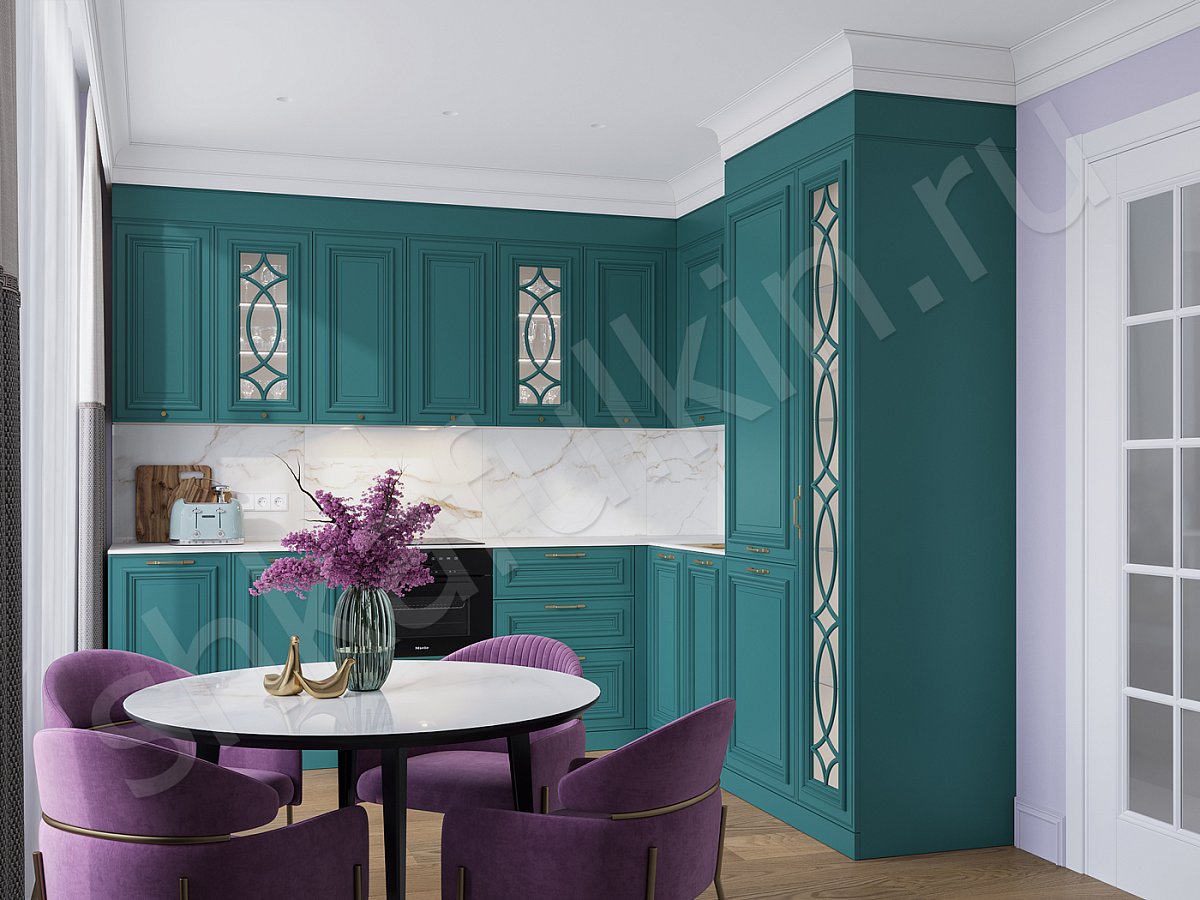 Фасады: МДФ c фрезеровкой, крашенная по NCS, вставка стекло прозрачное.