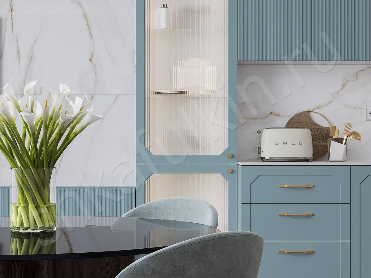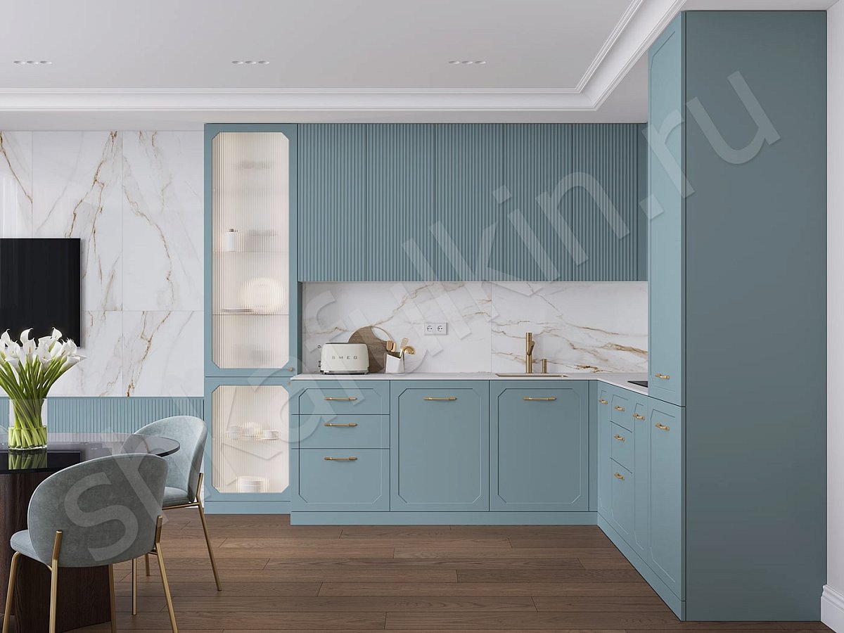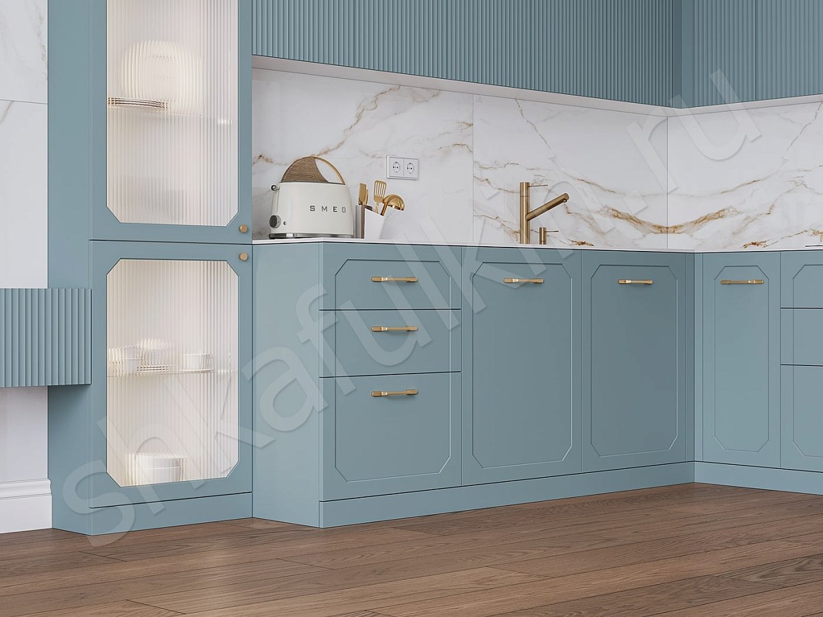 Фасады: МДФ c фрезеровкой, крашенная по NCS, вставка стекло Moru.