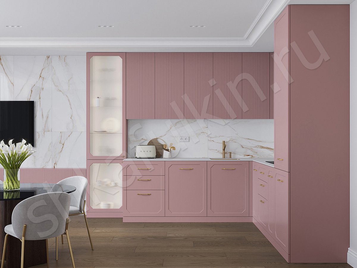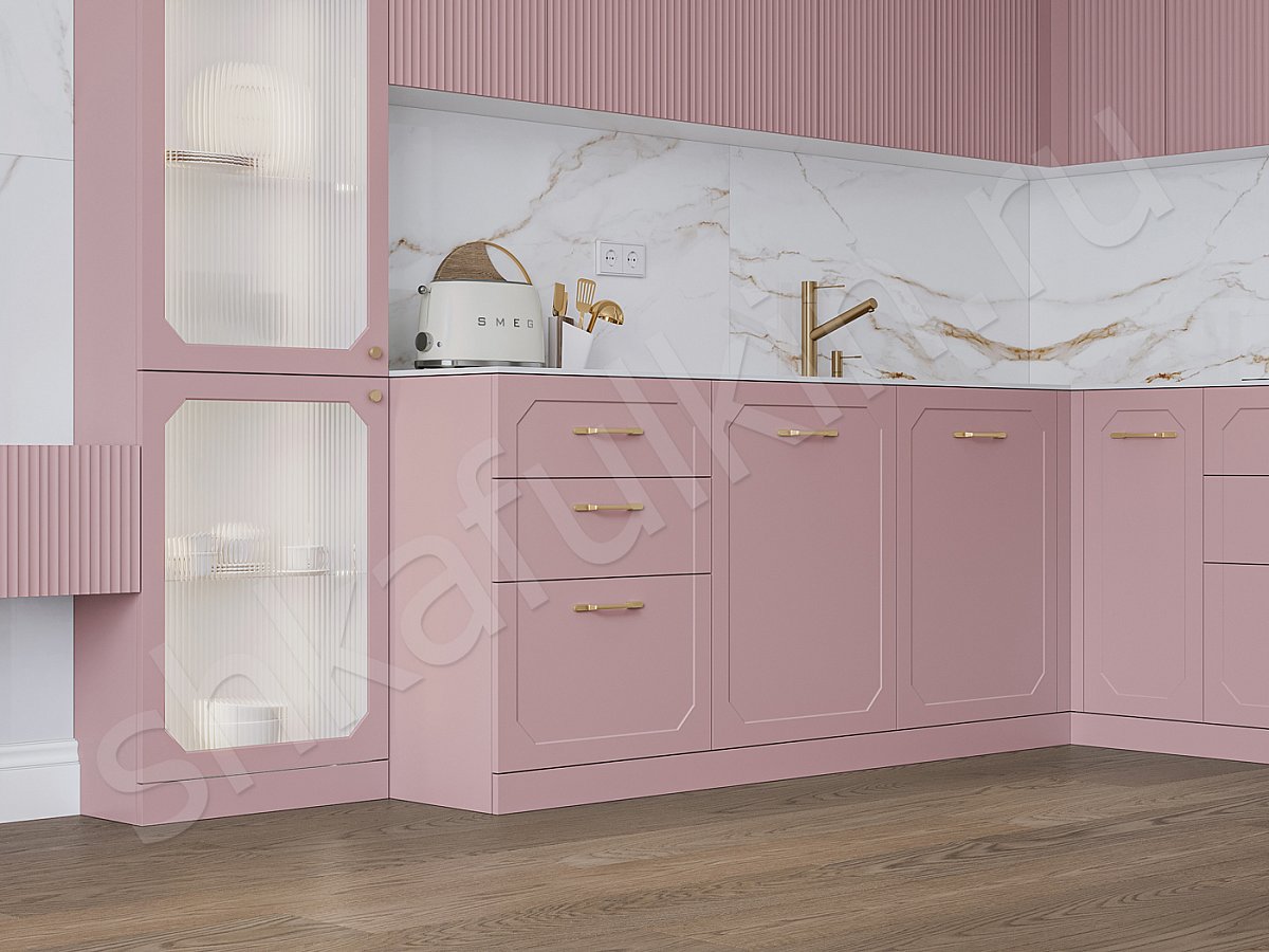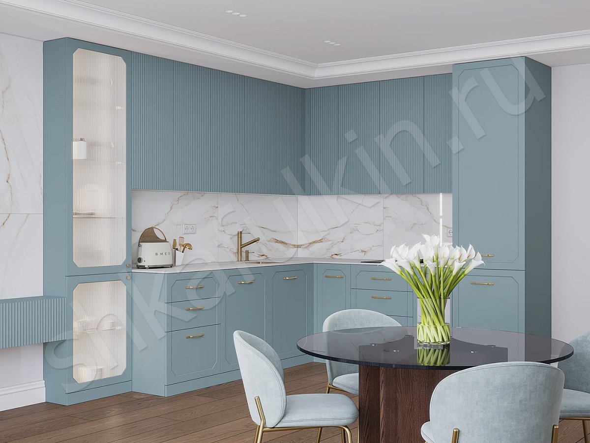 Фасады: МДФ c фрезеровкой, крашенная по NCS, вставка стекло Moru.