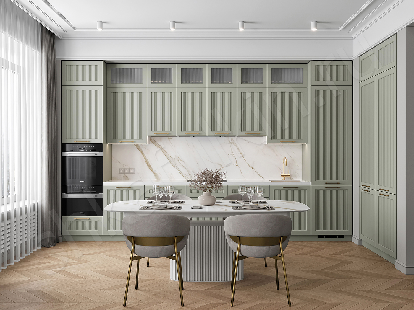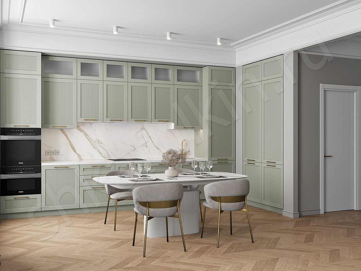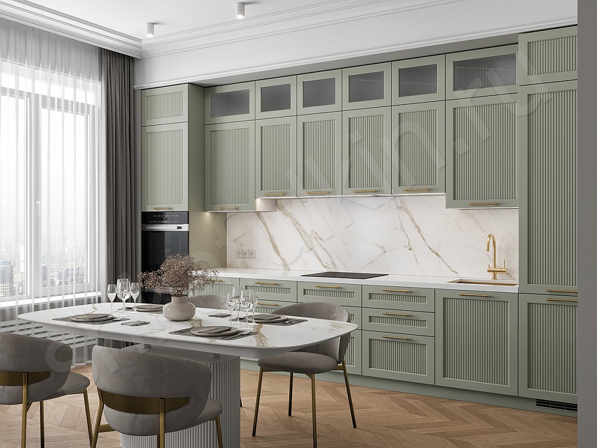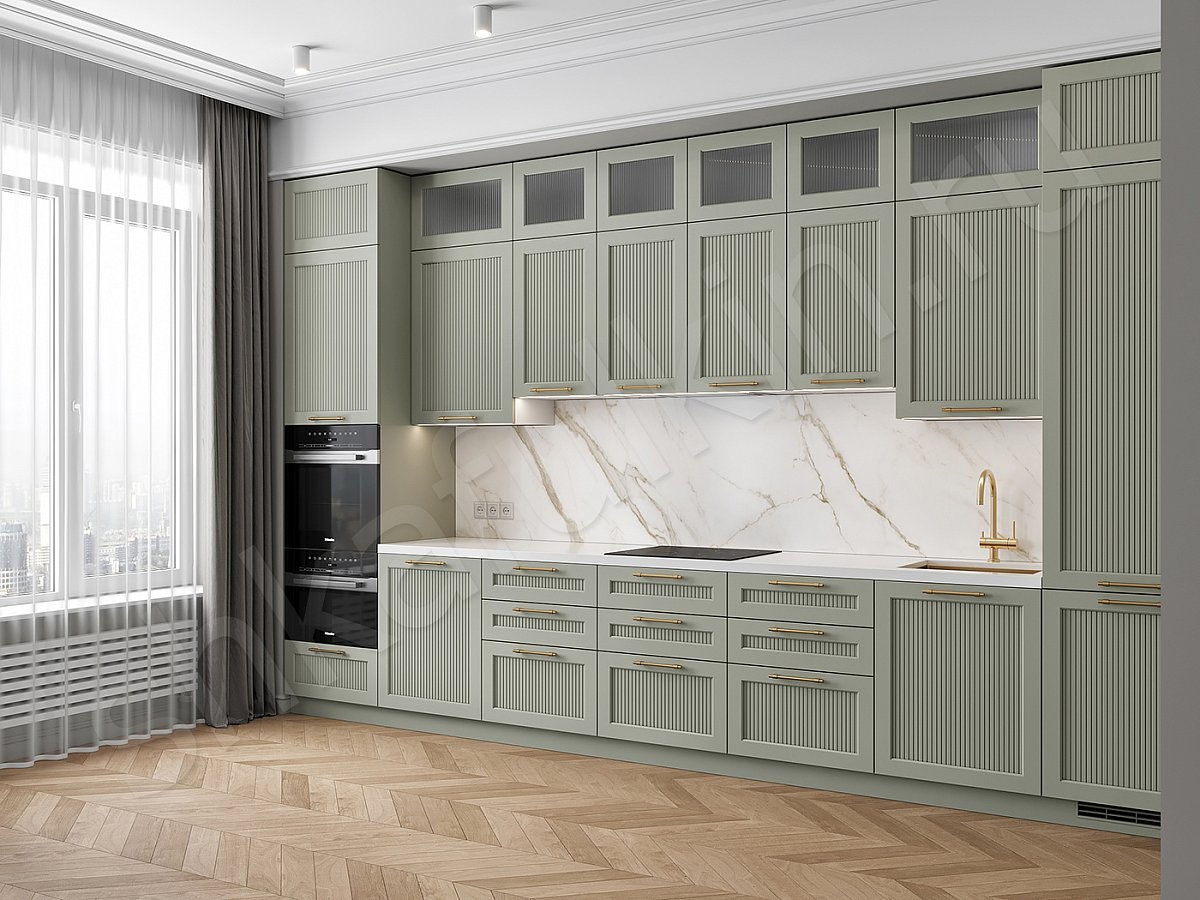 Фасады: МДФ крашенная по NCS, вставка рифленое стекло.