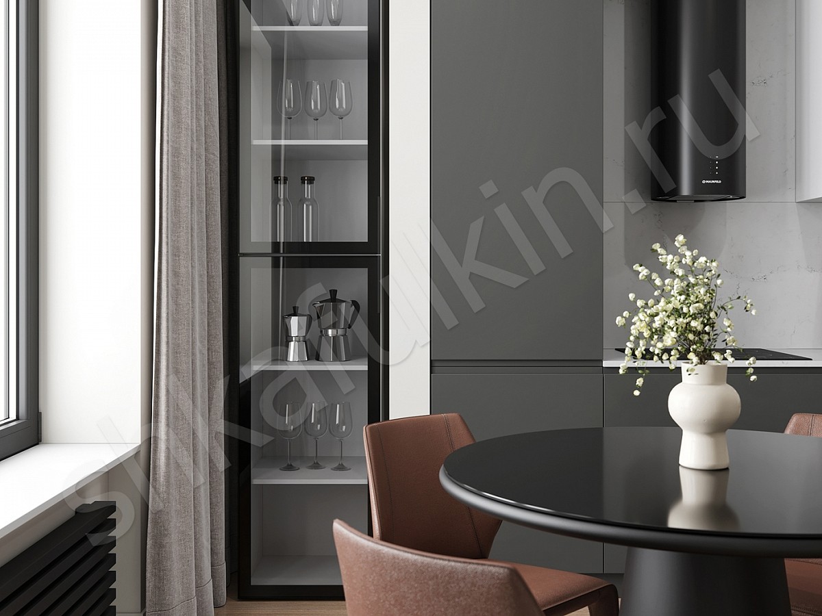 Фасад: алюминиевая рама со стеклом, цвет черный.