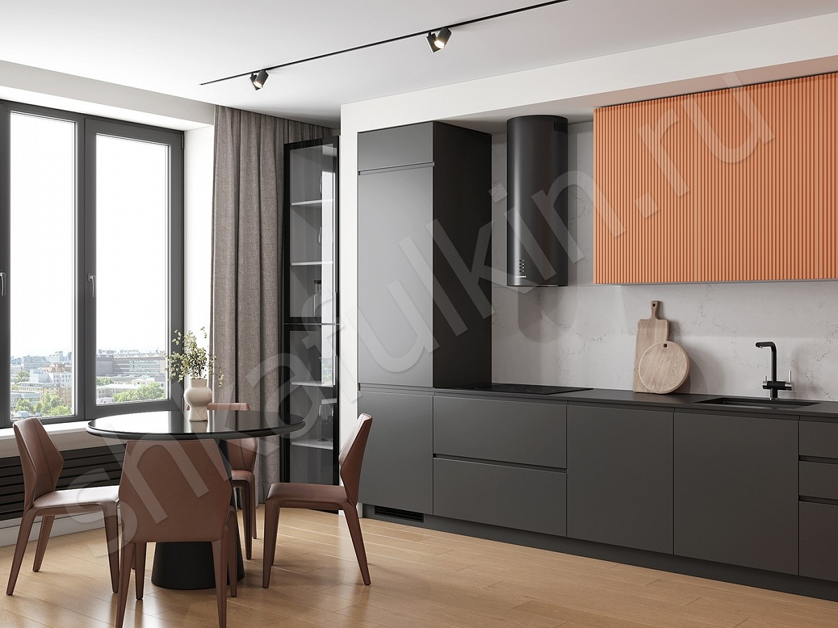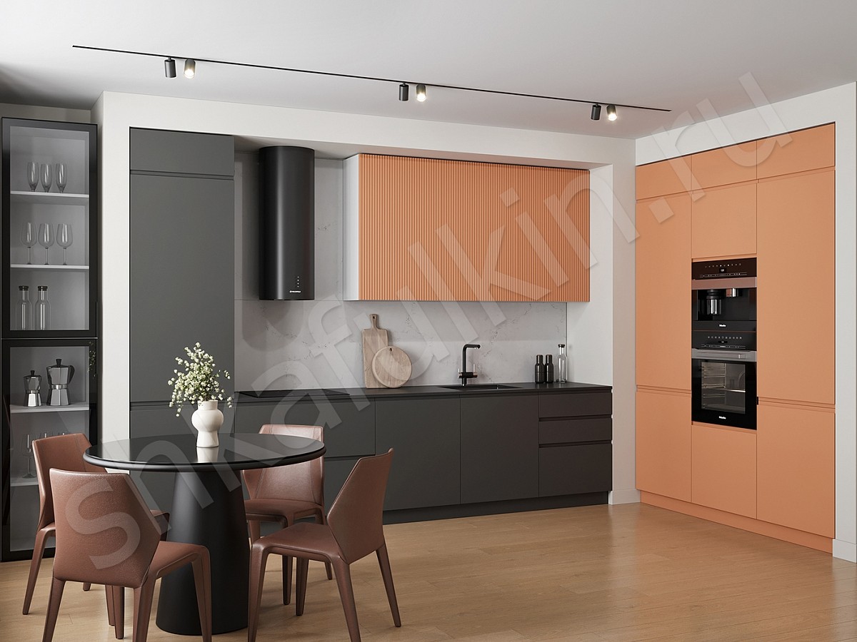 Фасад: МДФ с фрезеровкой, крашенный NCS S 0540-Y60R.