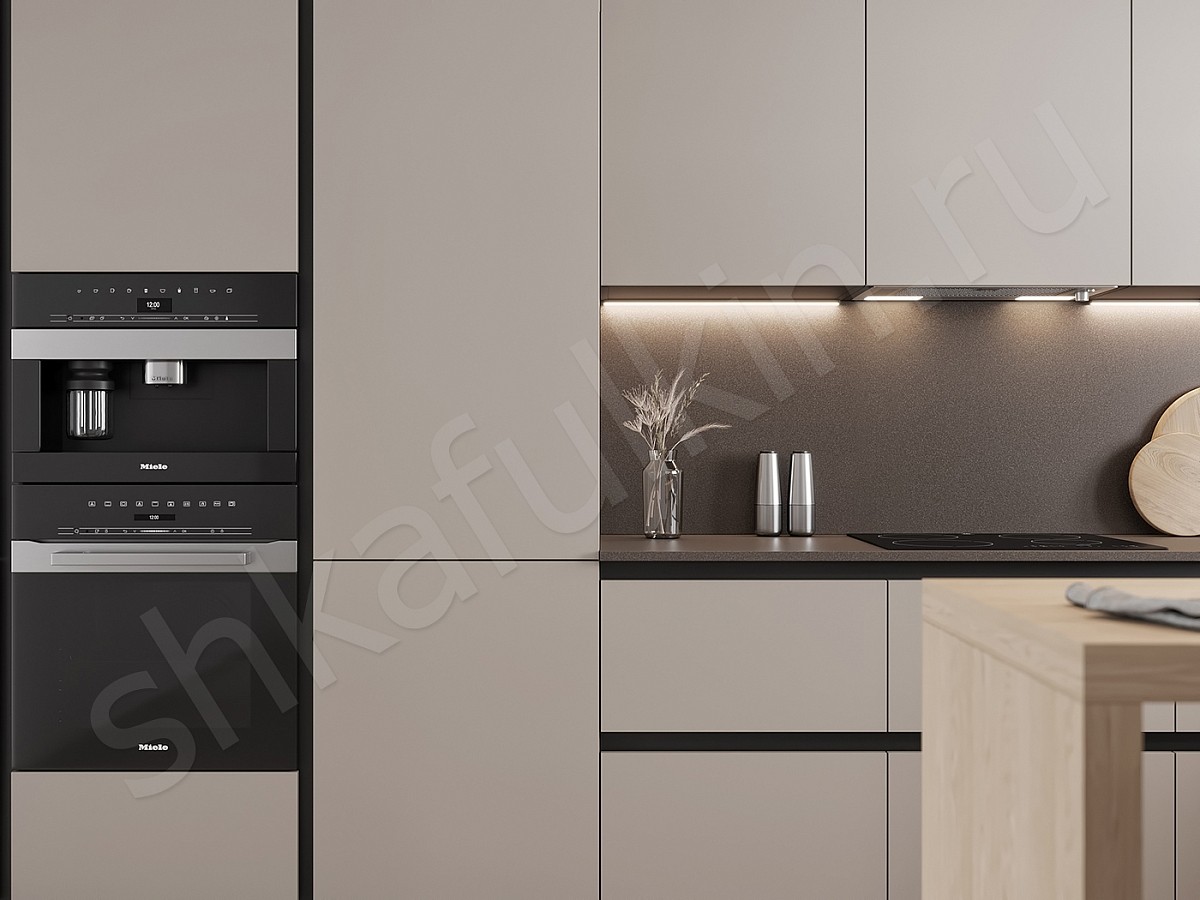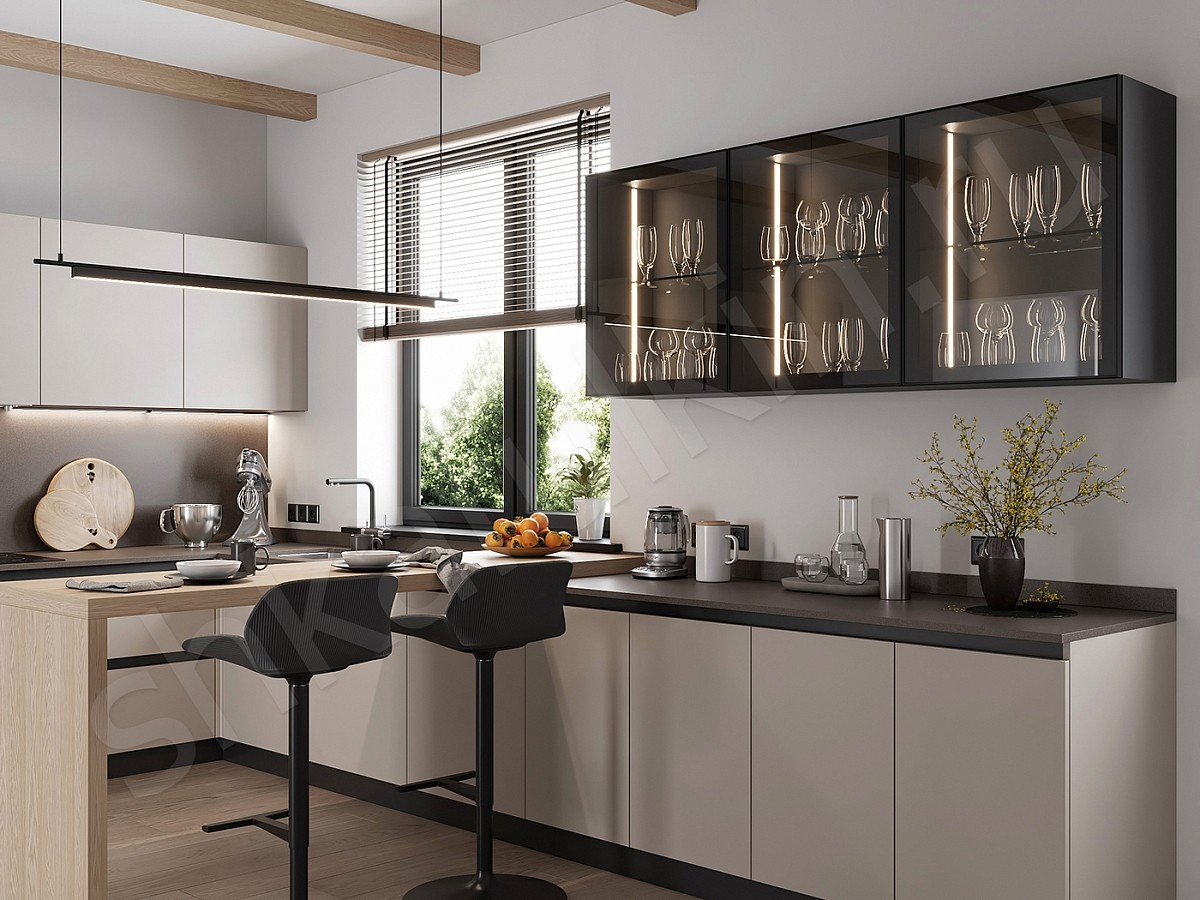 Фасады: МДФ панели AGT/алюминиевая рама со стеклом.