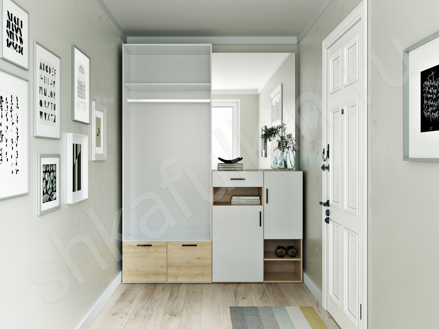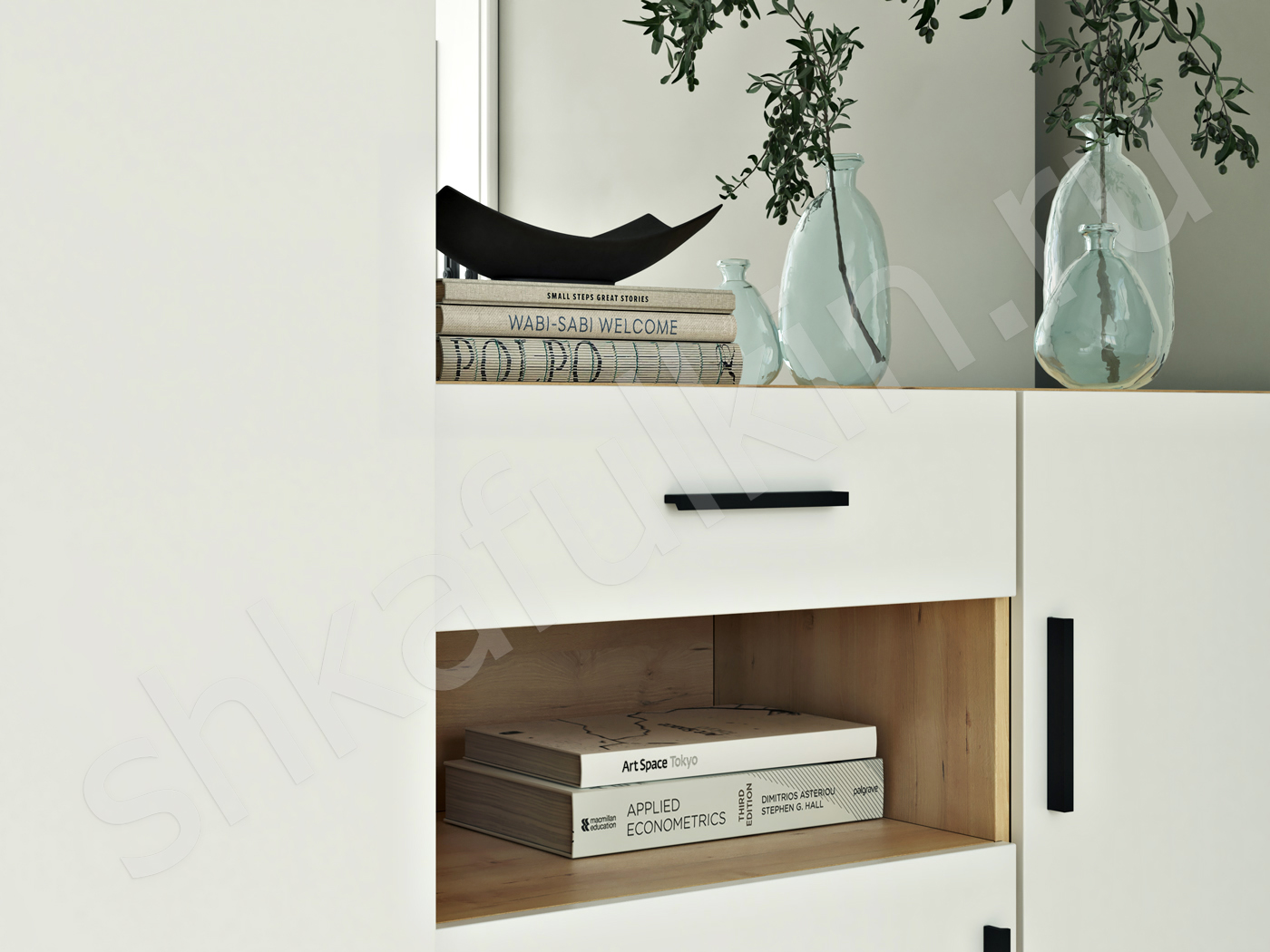Фасад: ЛДСП W1000 ST9 Белый премиум, H3991 Бук Кантри натуральный.