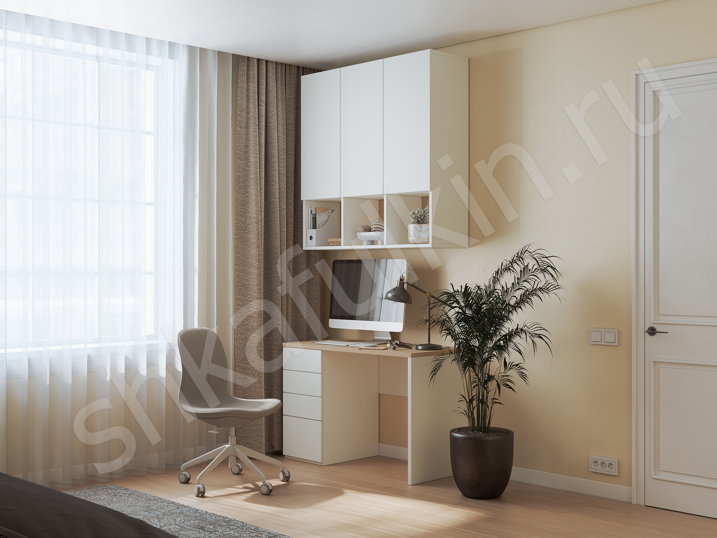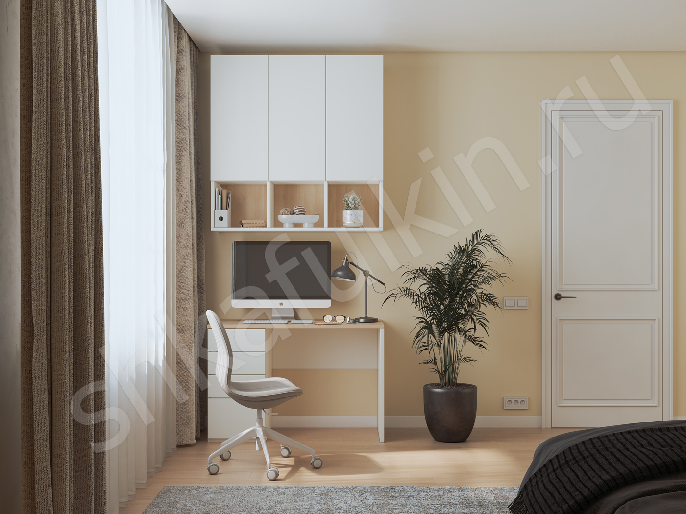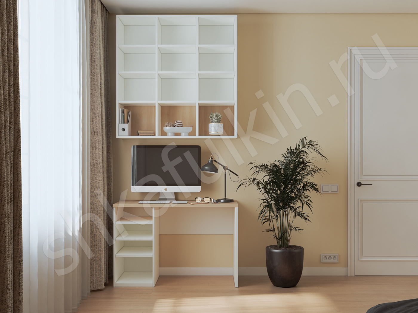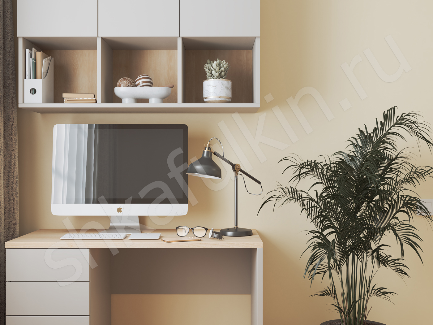 Корпус: ЛДСП W1000 Белый премиум, ЛДСП H1277 Акация Лэйклэнд светлая.