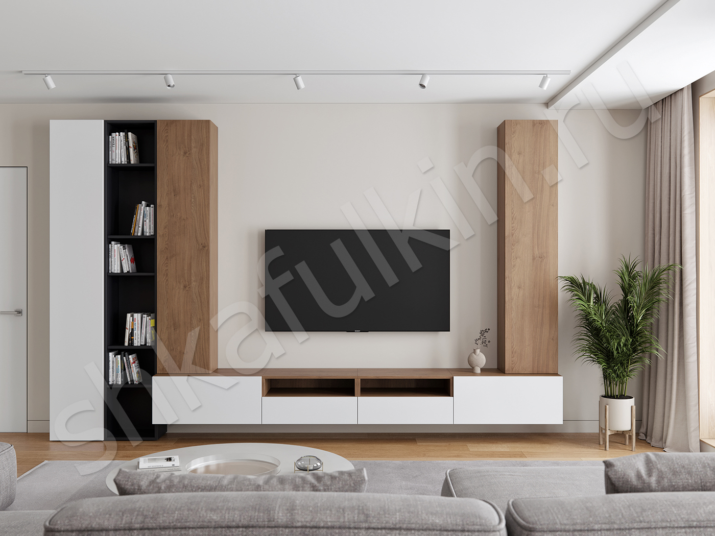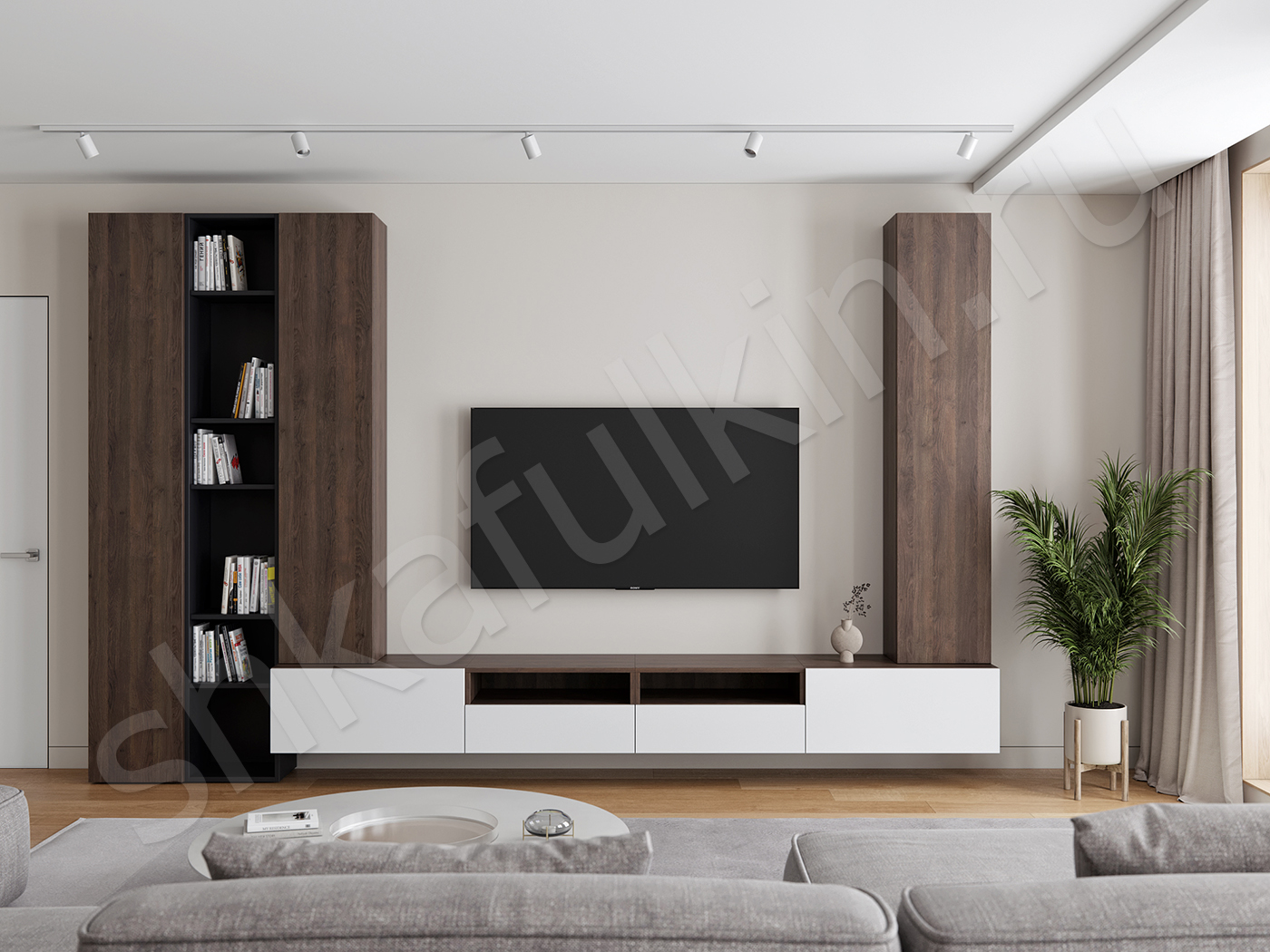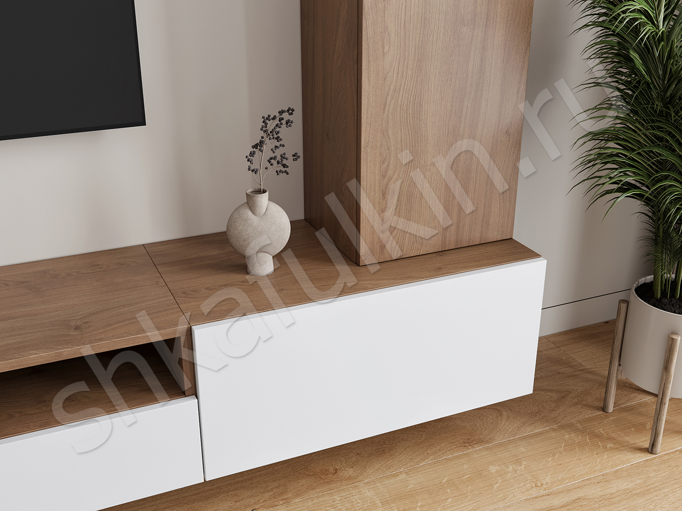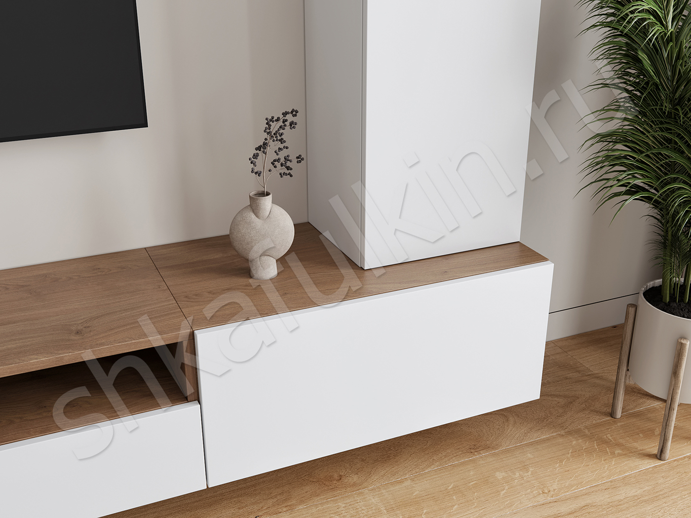 Подвесная конструкция крепится к стене.