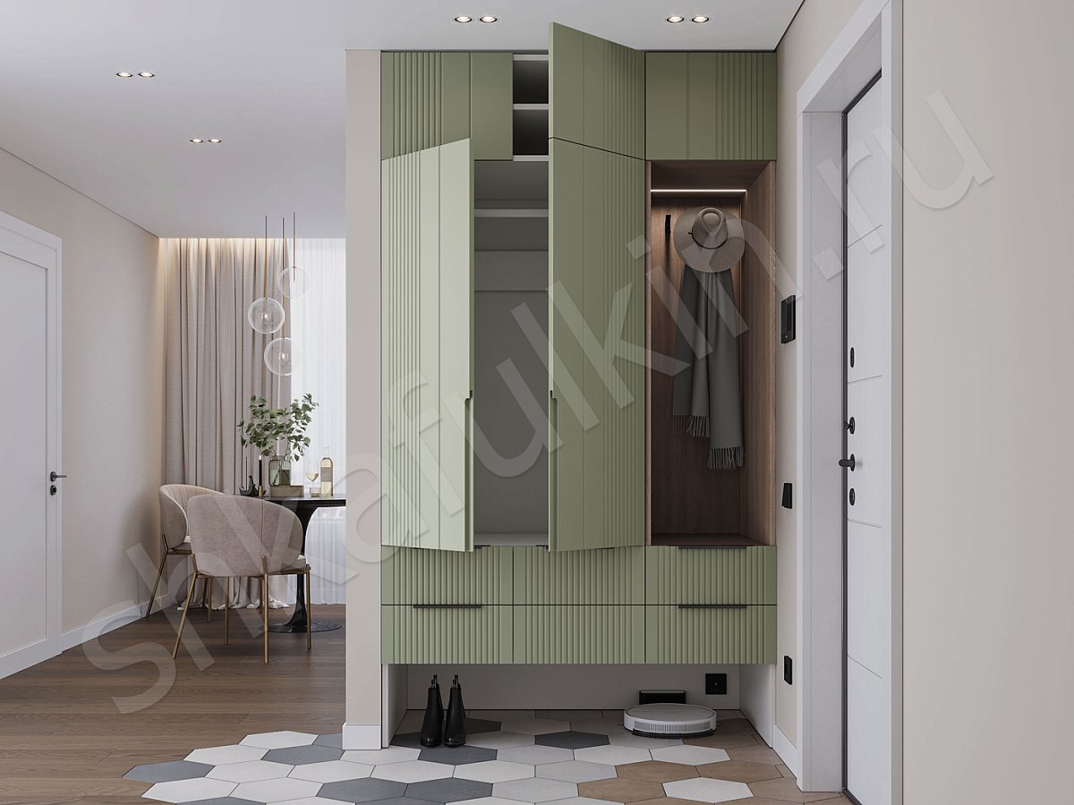 Фасады: МДФ c фрезеровкой, крашенная по NCS.