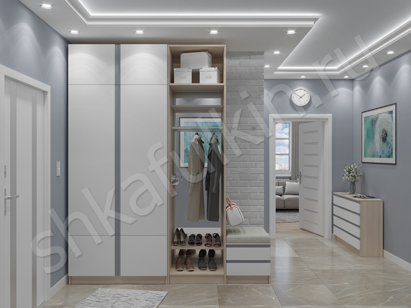 Стильная и безупречная фактура шкафа "Аллегро" подчеркнет интерьер и станет ключевым элементом в прихожей. Шкаф с интегрированными ручками практичен и функционален. Давно известный факт, что белый цвет визуально расширяет пространство, делая его более легким и воздушным. Даже такой массивный предмет мебели, как шкаф, выполненный в белом цвете, не будет перегружать пространство. Пастельный цвет стен и светлый шкаф-купе создадут атмосферу воздушности и легкости в интерьере. Мебель может быть выполнена в любом цветовом решении.