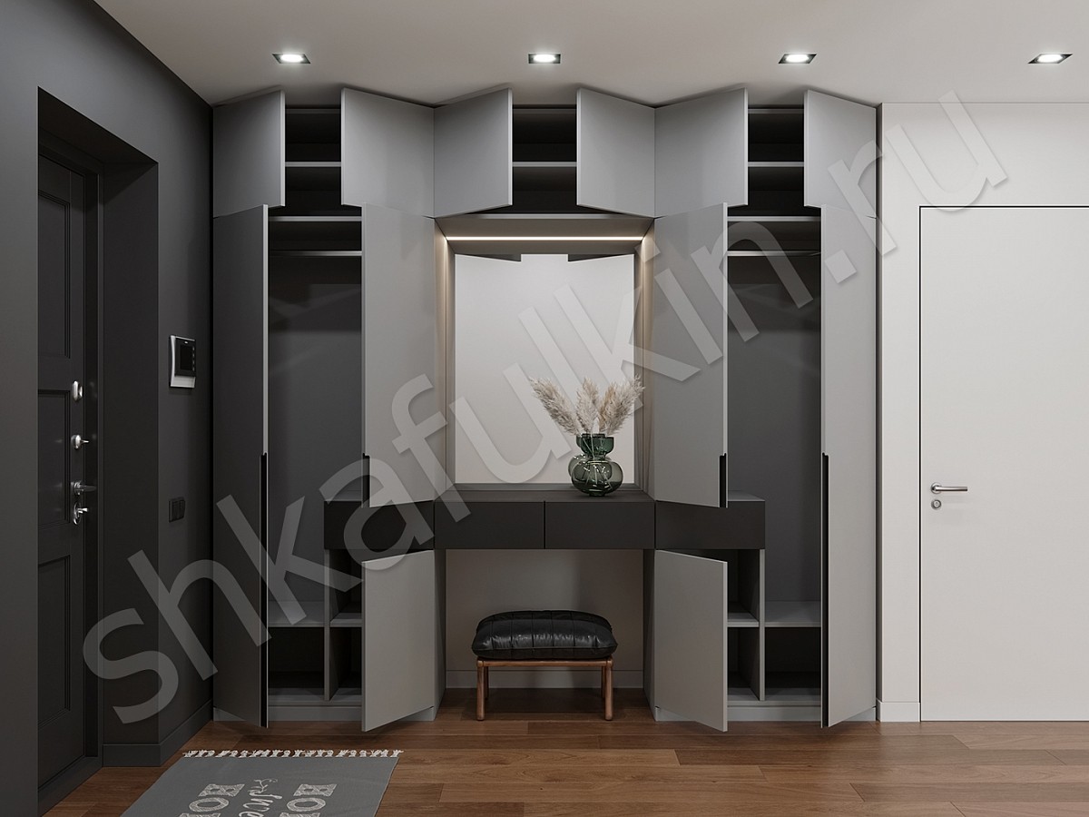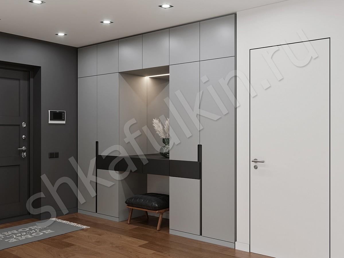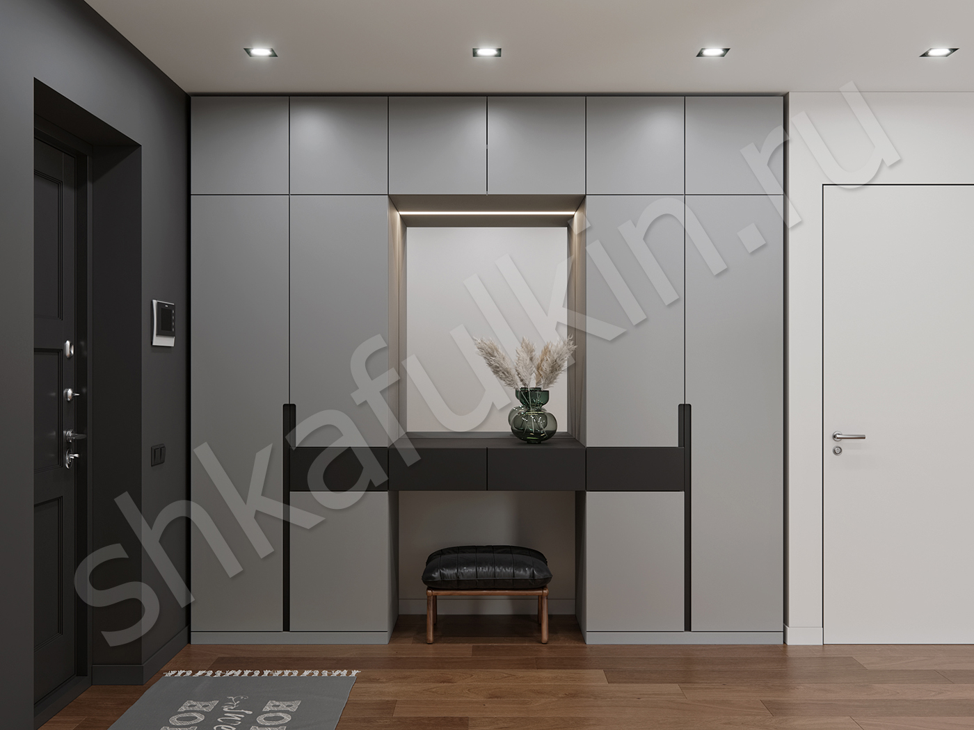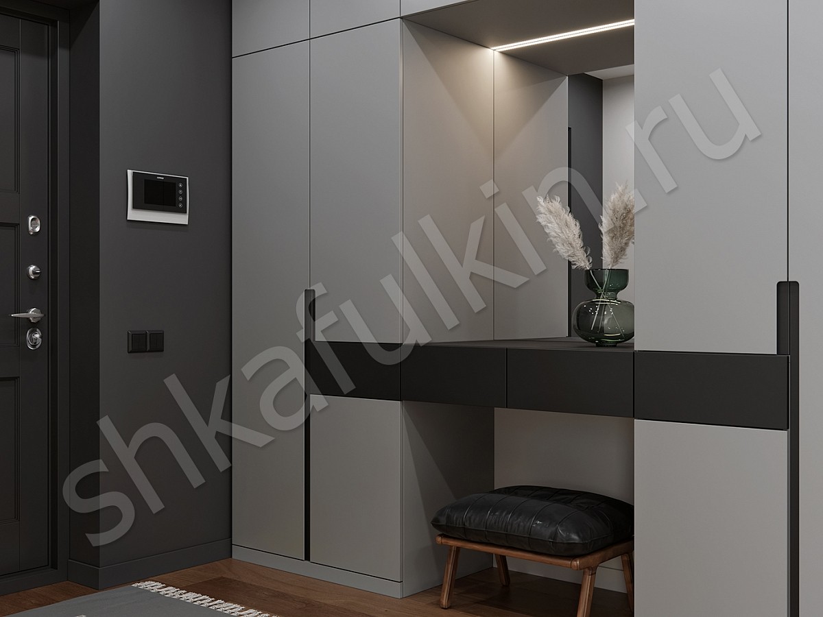 Фасад: МДФ с фрезеровкой, крашенный по NCS S 4500-N и NCS S 9000-N.