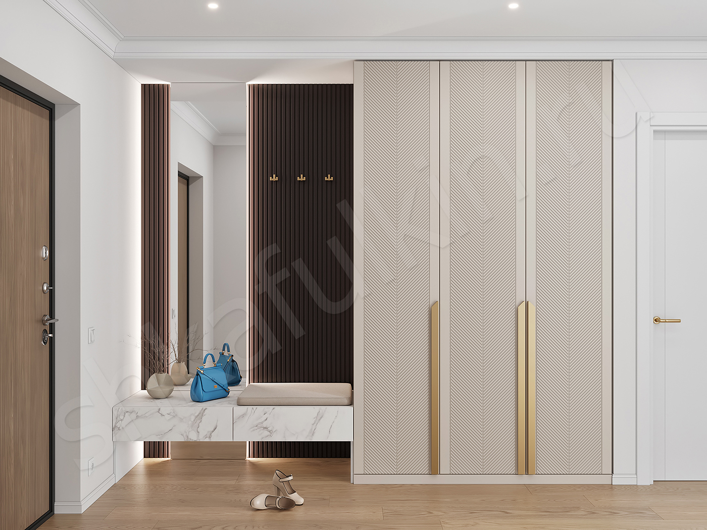 Фасады: МДФ с фрезеровкой, крашенная по NCS.