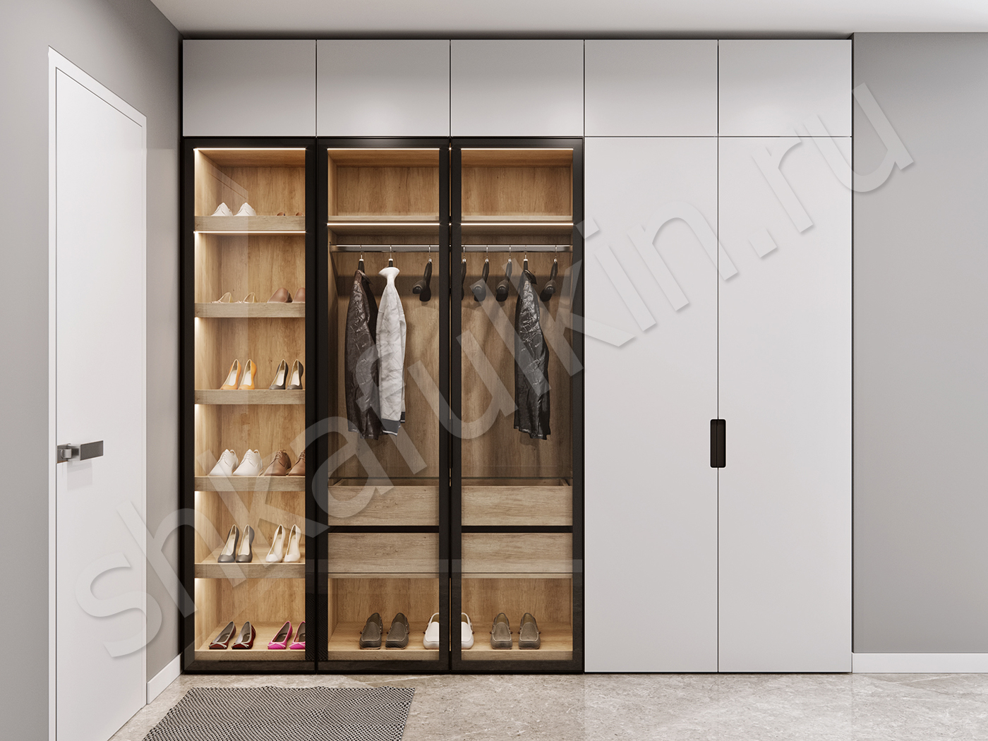 Наполнение: ящики, полки, штанга, обувницы, корзины.
