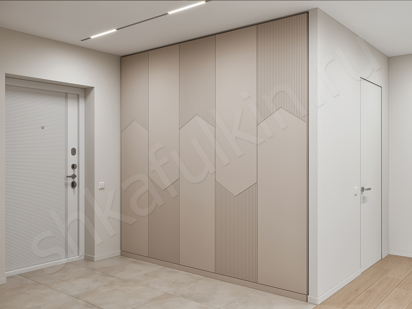 Фасад: МДФ с фрезеровкой, крашенная по NCS.