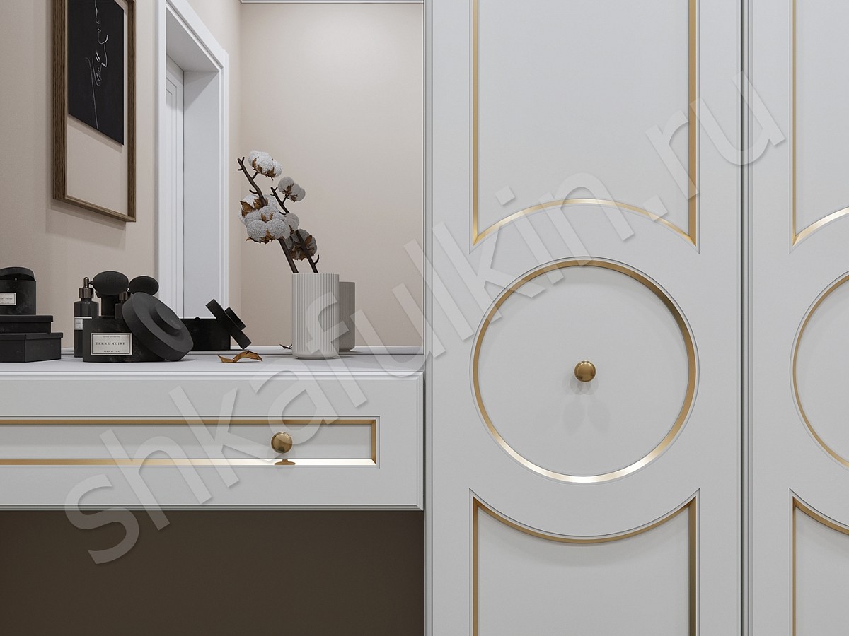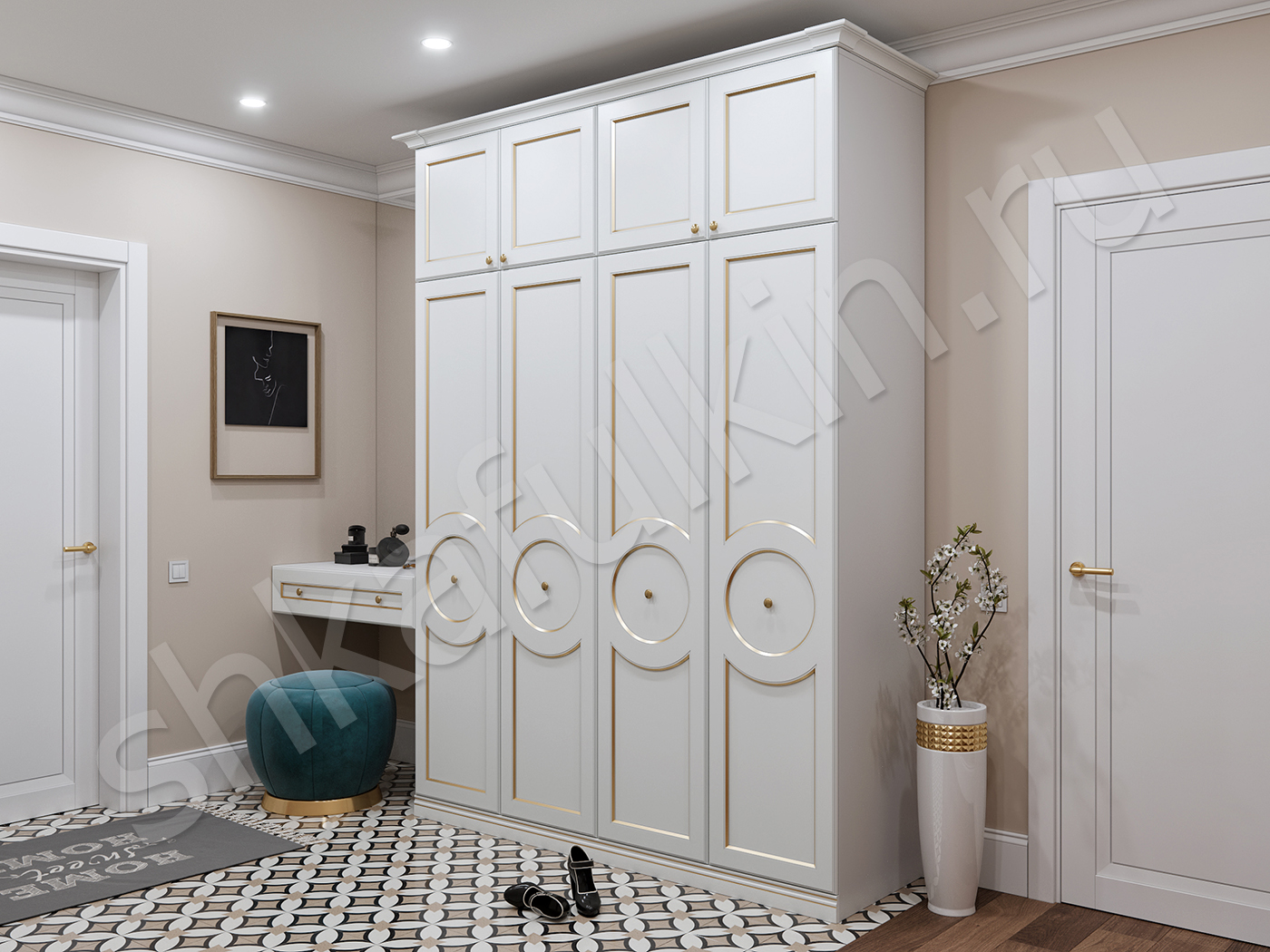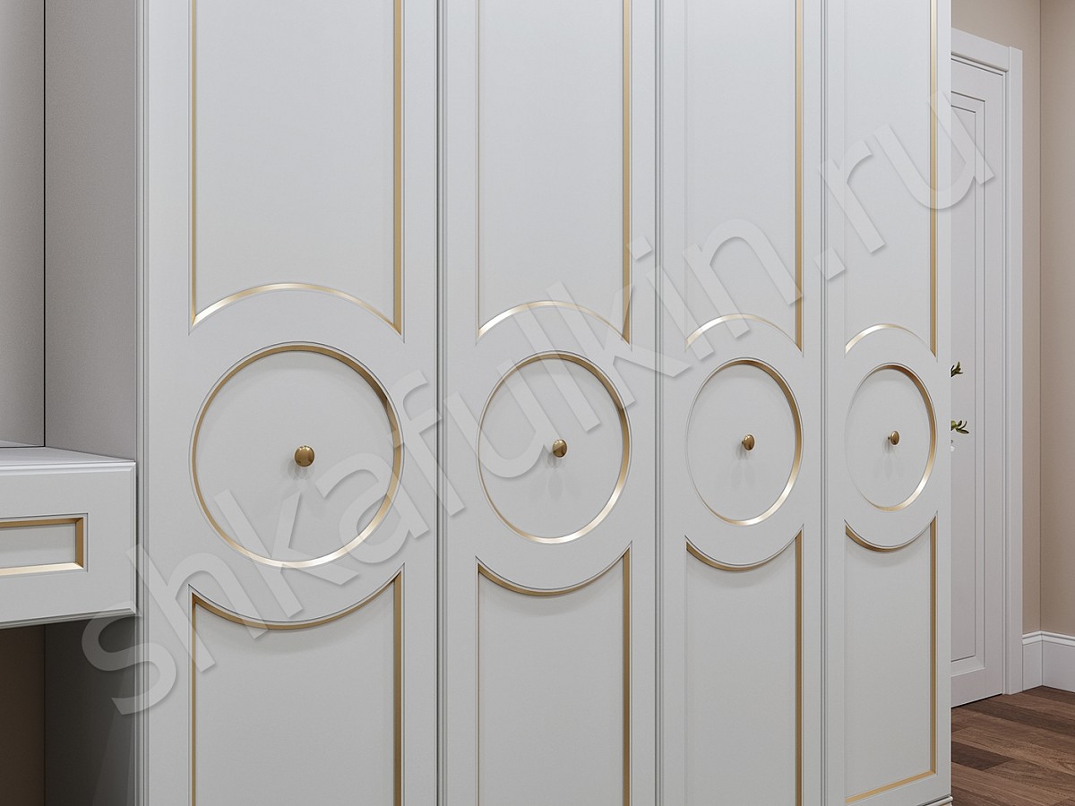 Двери: МДФ с фрезеровкой, крашенный по RAL 9003 с золотой патиной.