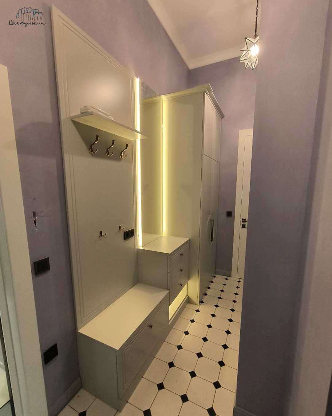 Размер прихожей на фото: 3000/2200/550 мм.