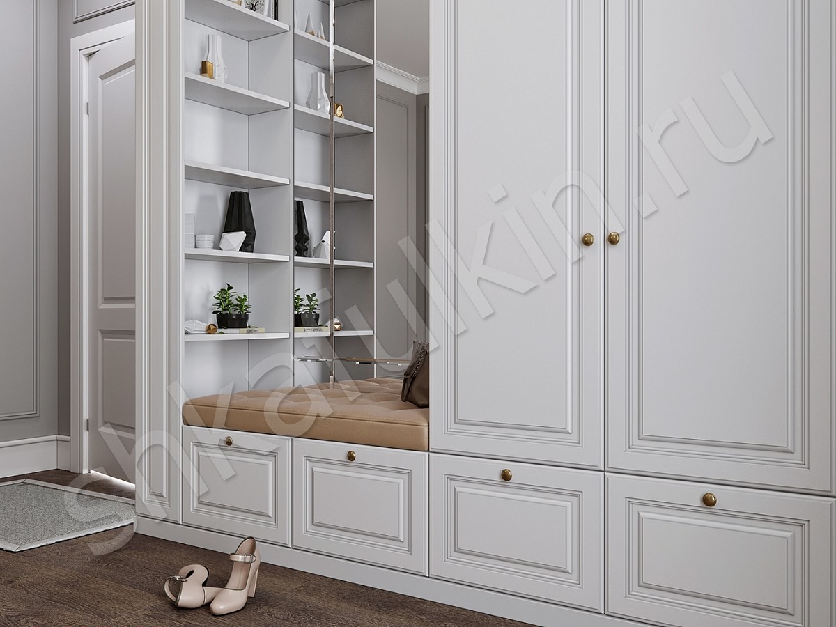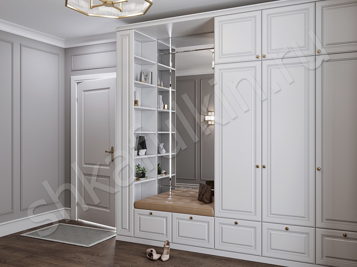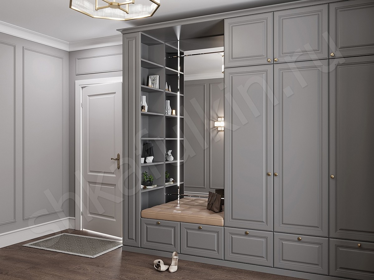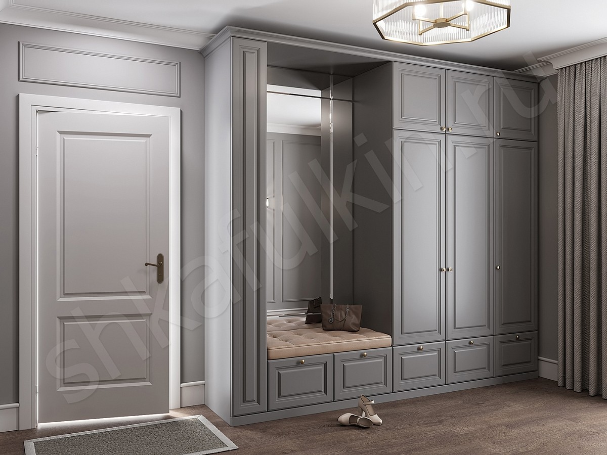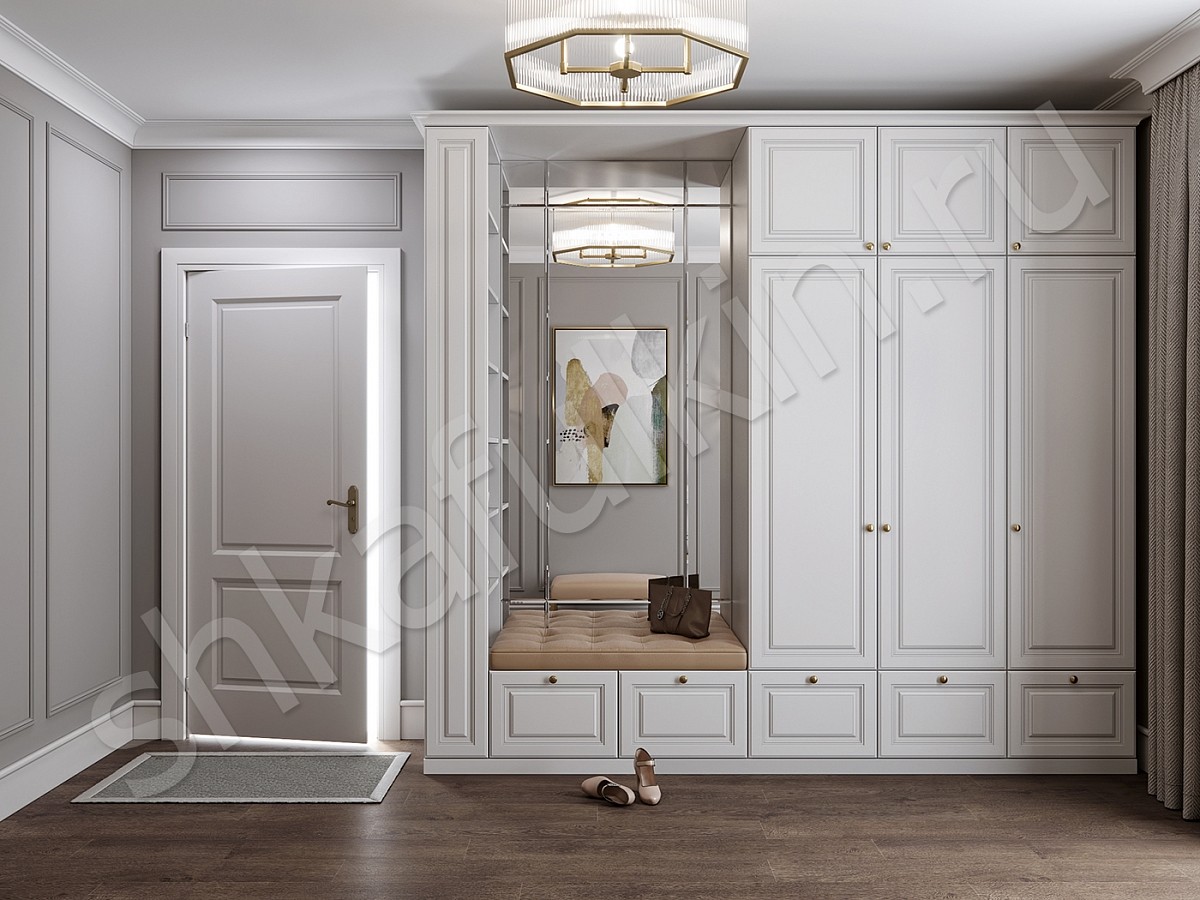 Изысканный стиль и безупречная фактура фасадов прихожей "Гамильтон" выгодно подчеркнут интерьер в классическом стиле или в стиле неоклассика. Мебель может быть выполнена в любом цветовом решении.