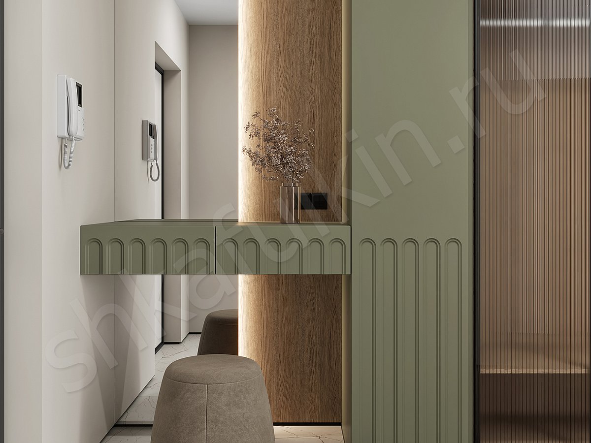 Фасады: МДФ с фрезеровкой, крашенная по NCS.