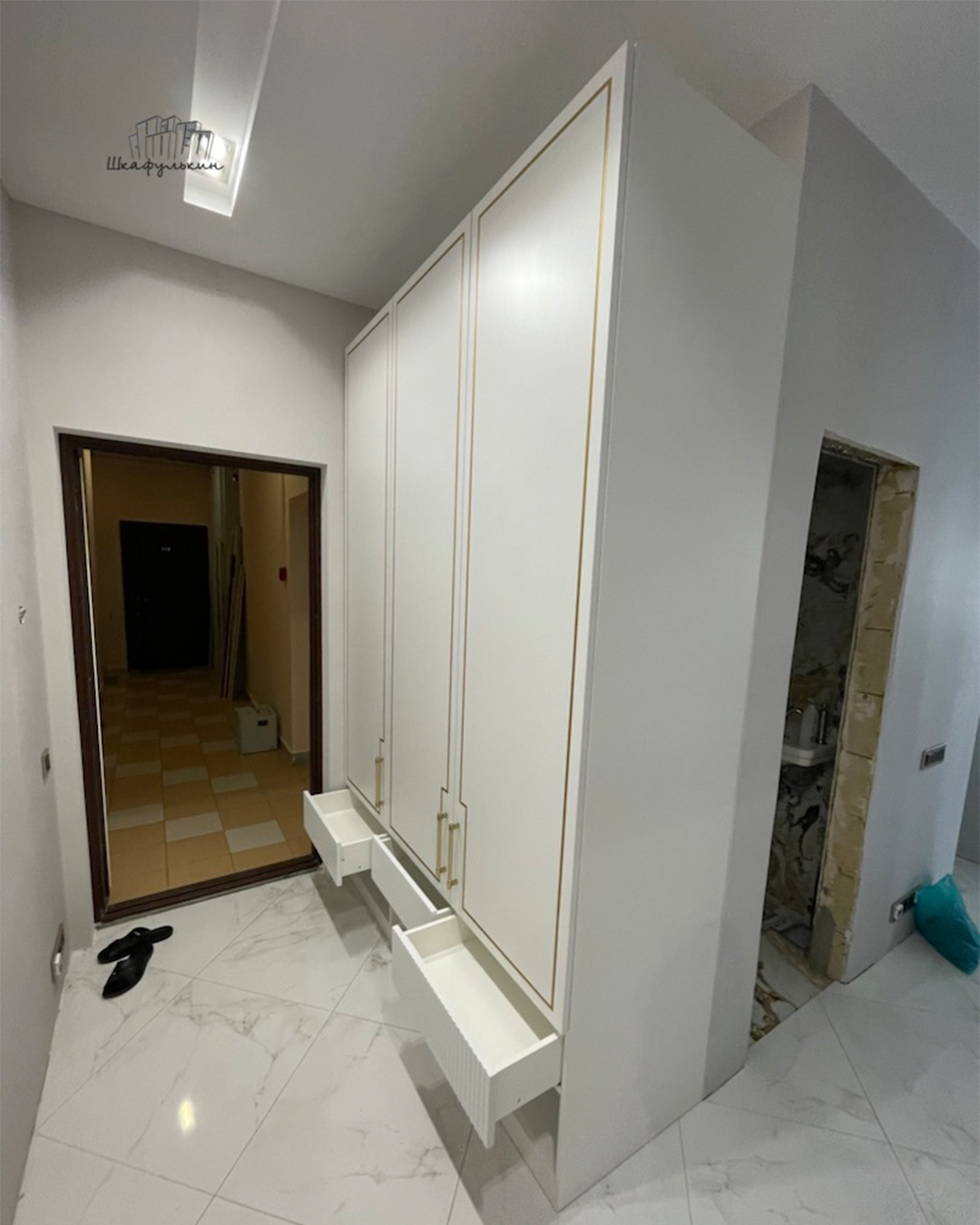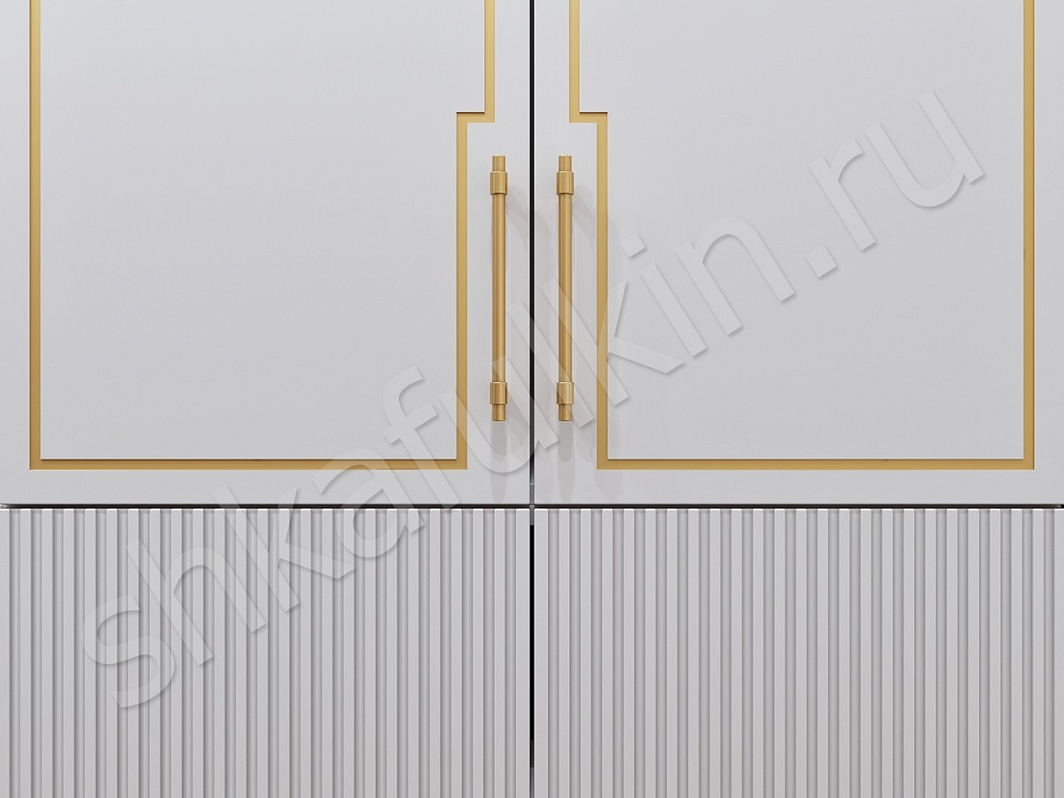 Открывание: ручка-рейлинг модерн, матовое золото.