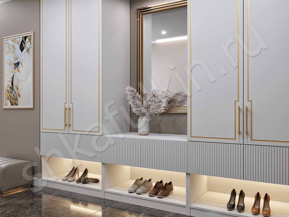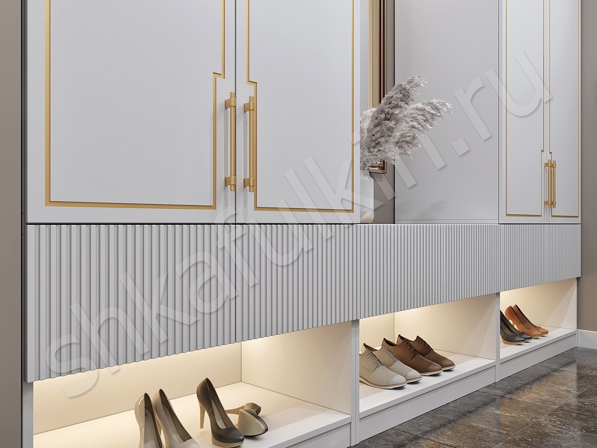 Фасады: МДФ с фрезеровкой, крашенная по RAL, патина.