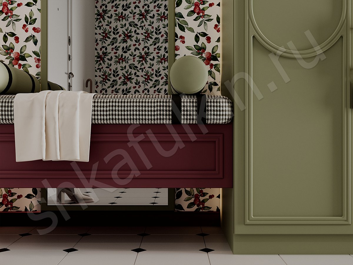 Навесной ящик с мягкой подушкой приглашает присесть на мгновение, чтобы перевести дух перед выходом в большой мир или, наоборот, с наслаждением погрузиться в атмосферу домашнего уюта.