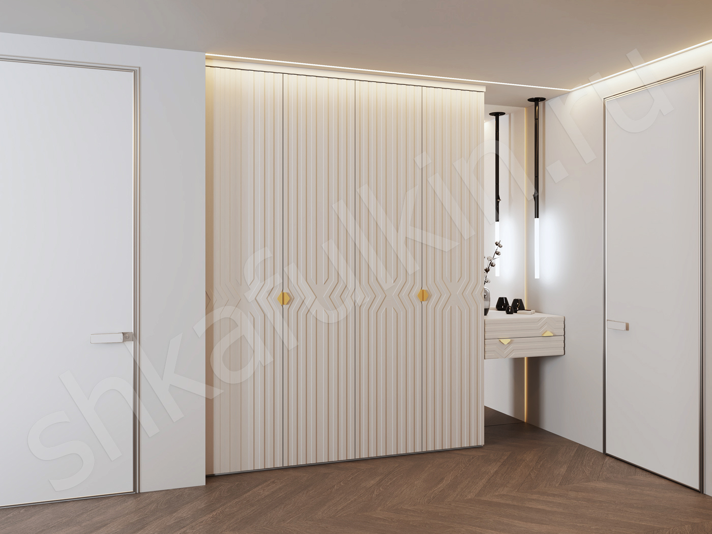 Фасад: МДФ с фрезеровкой крашенный по RAL 9016.