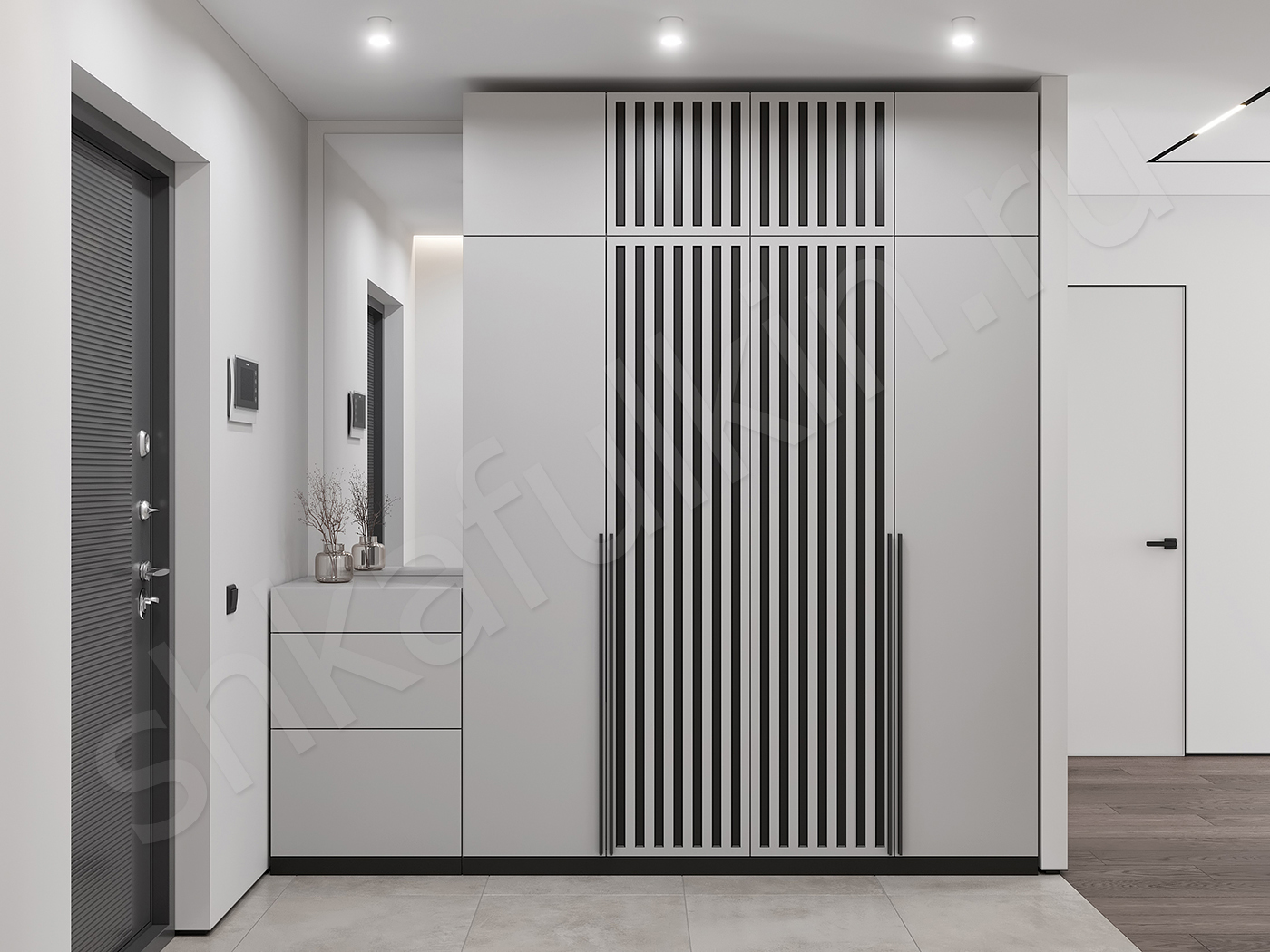 Общие размеры прихожей: 2400х2450х580 мм.