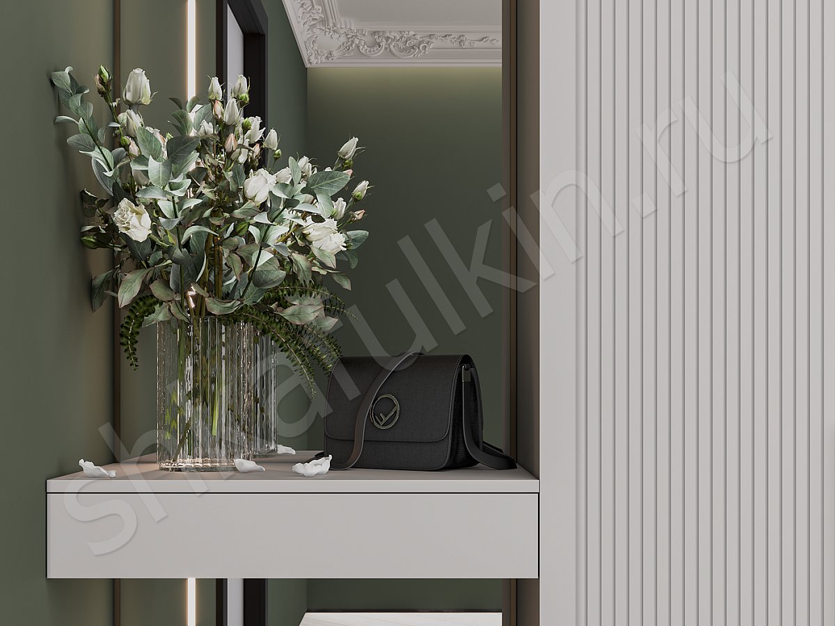 Фасады: МДФ глянец c фрезеровкой, крашенная по NCS.