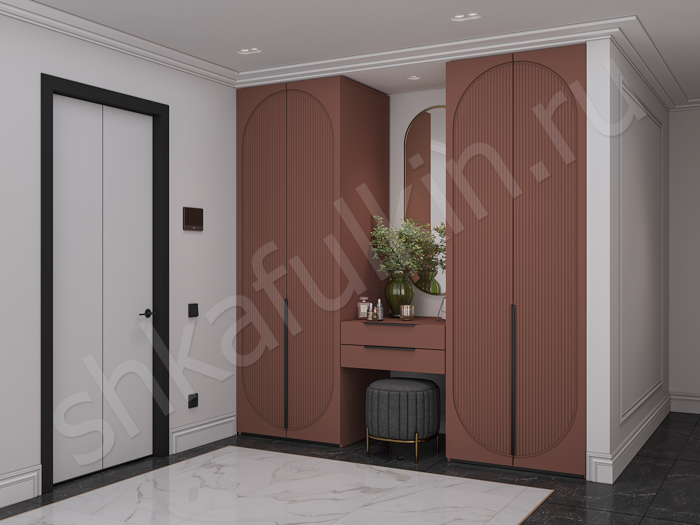 Фасады: МДФ с фрезеровкой, крашенная по NCS.