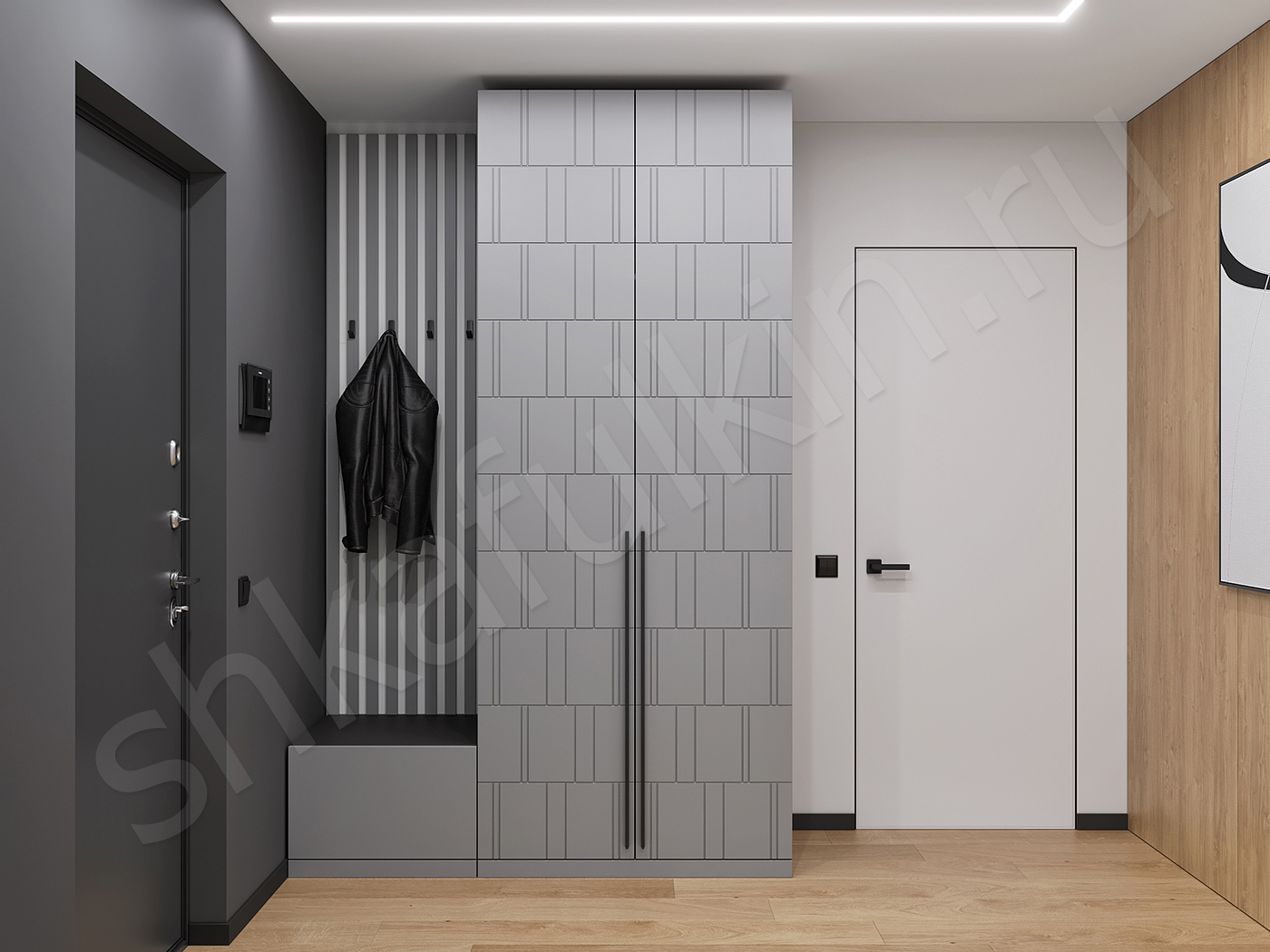 Общий размер прихожей: 1600х2500х580 мм.