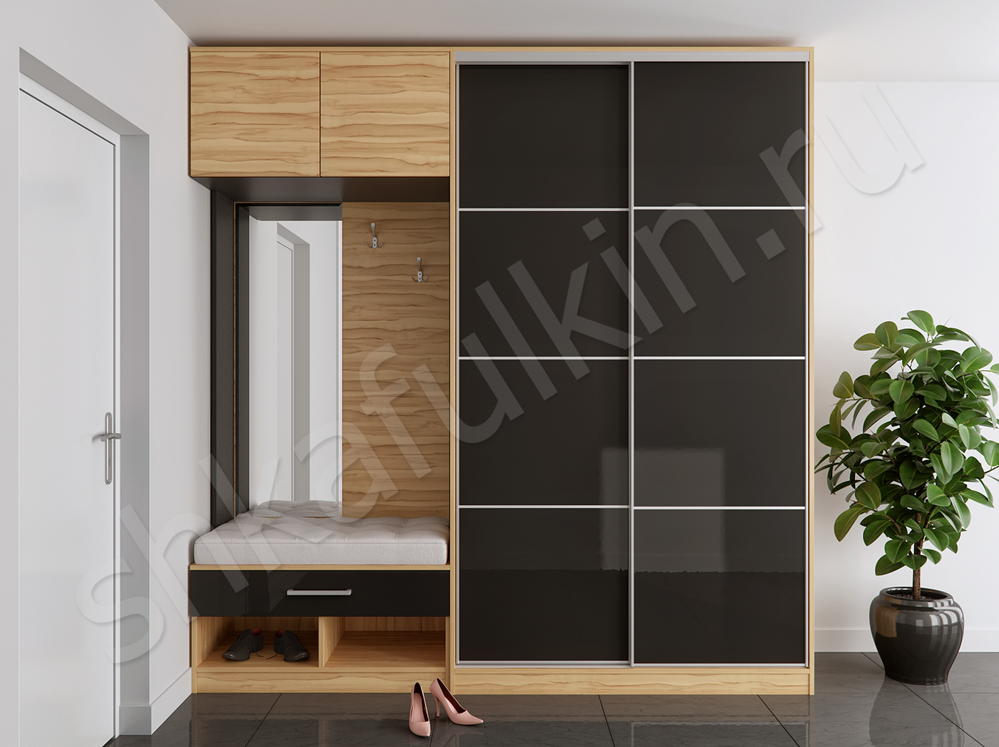 Прихожая в стиле Модерн прекрасно дополнит современный интерьер. Глянцевые фасады дверей шкафа-купе выглядят очень эффектно и интересно в сочетании с древесной отделкой и дверками антресоли, которые открываются нажатием по технологии TIP-ON. В данной модели используется тонкий алюминиевый профиль, который позволяет реализовать самые смелые идеи и создать стильные и вместительные шкафы-купе. Вся продукция, представленная в нашем каталоге, проходит многоуровневую систему контроля, что гарантирует полное соответствие изделий действующим стандартам качества и установленным критериям, предъявляемым к безопасной эксплуатации. Данный вид базовых комплектующих изготовлен из высококачественного алюминиевого сплава и представлен у нас в большом разнообразии оттенков и фактур финишного покрытия. Если вы хотите сделать мебель своего дома в едином стиле, то обратите внимание на шкаф-купе "Трио" - такой дуэт будет идеальным.