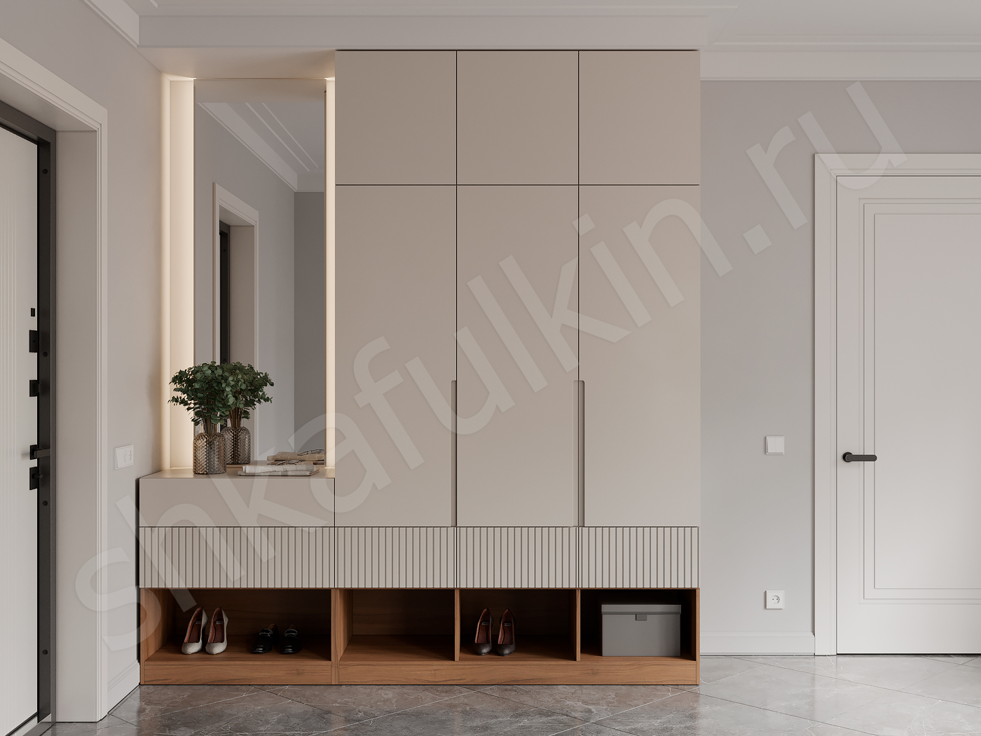 Фасады: МДФ с фрезеровкой покрашенный по NCS.