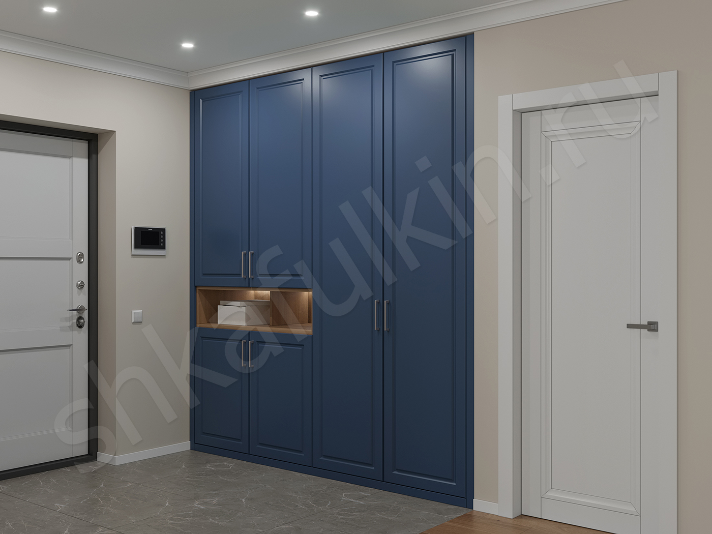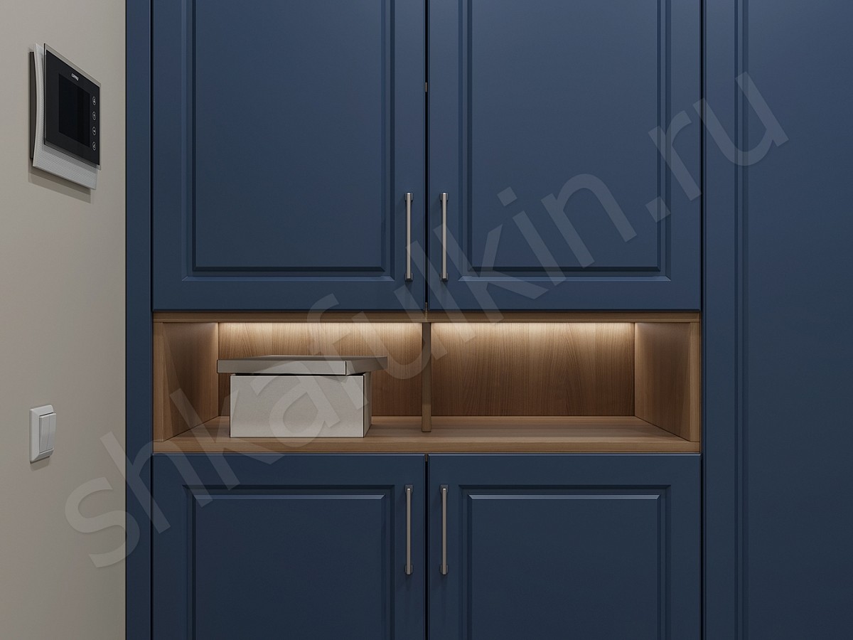 Фасад: МДФ с фрезеровкой, крашенный NCS S 5030-R80B.