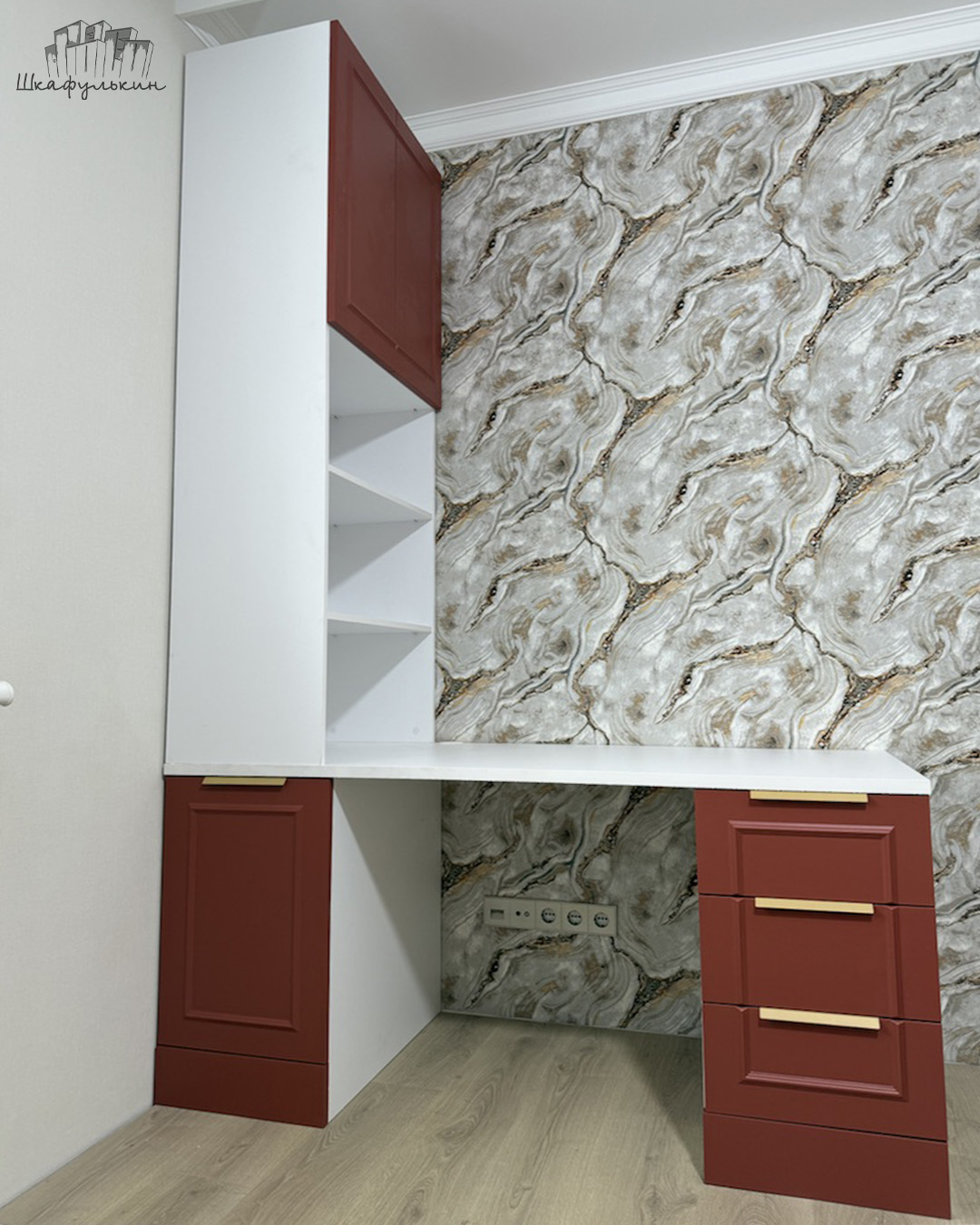 Тёплый винный оттенок — не просто цвет, это настроение: он мягко обнимает пространство, добавляя тепло и изысканность. Фасады с матовым покрытием подчёркивают текстуру, а лаконичные линии и скрытая фурнитура дают ощущение безупречной гармонии.
