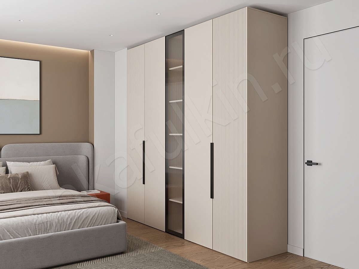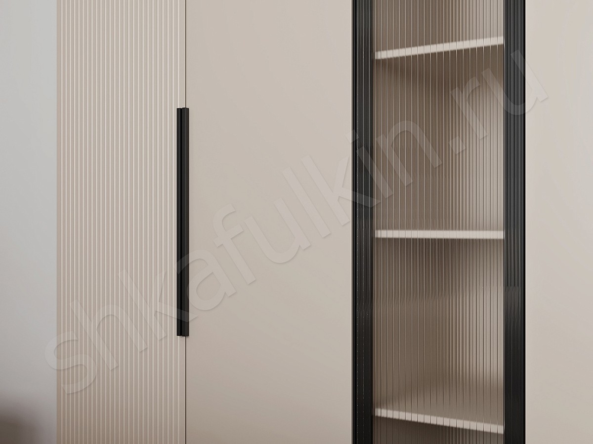 Фасады: алюминиевый профиль с рифленым стеклом.