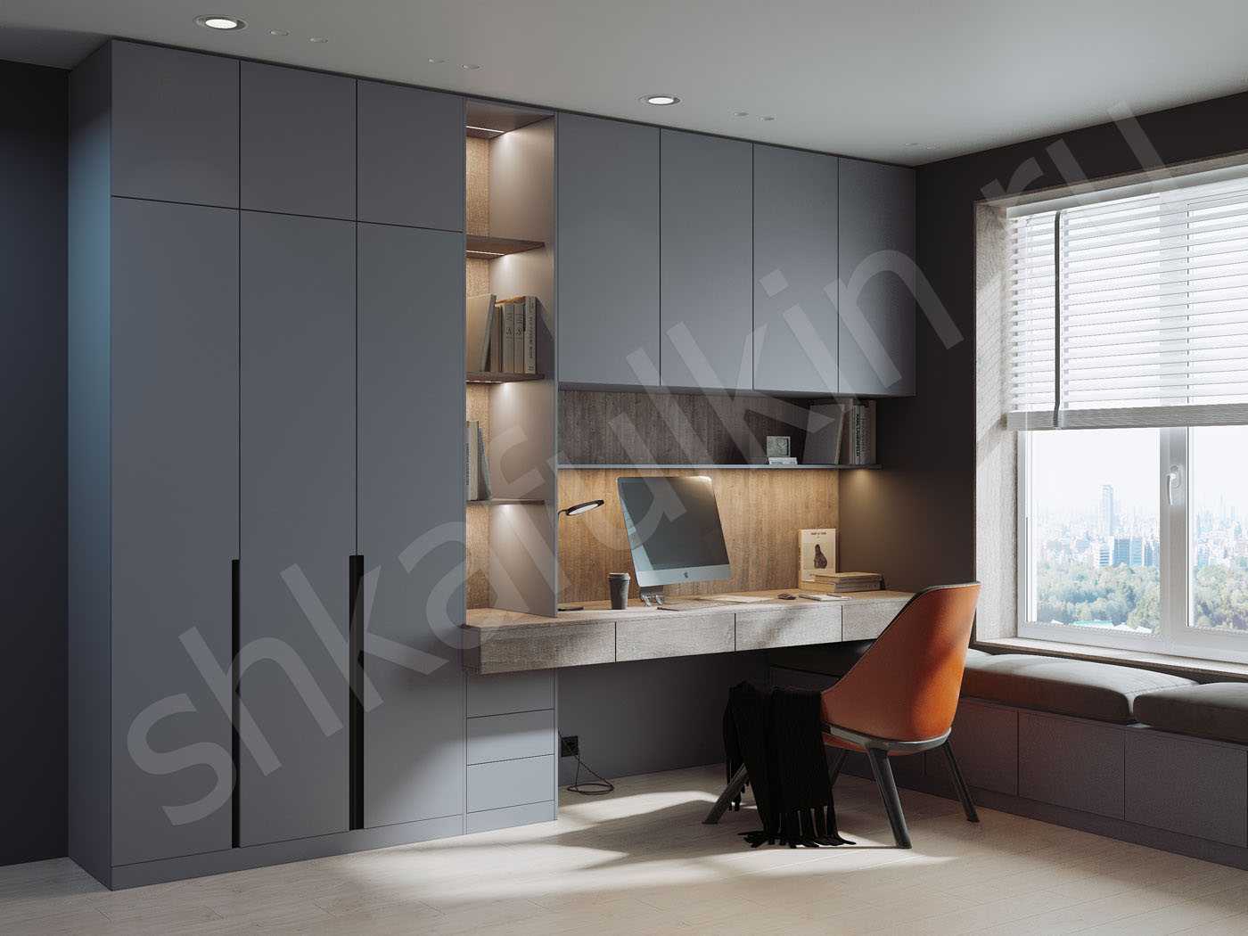 В условиях большинства квартир сложно выделить помещение, которое будет играть только роль кабинета, поэтому ограничиться установкой одного стола вряд ли получится. Зачастую кабинет – это и место для работы и отдыха, и конечно для хранения вещей.