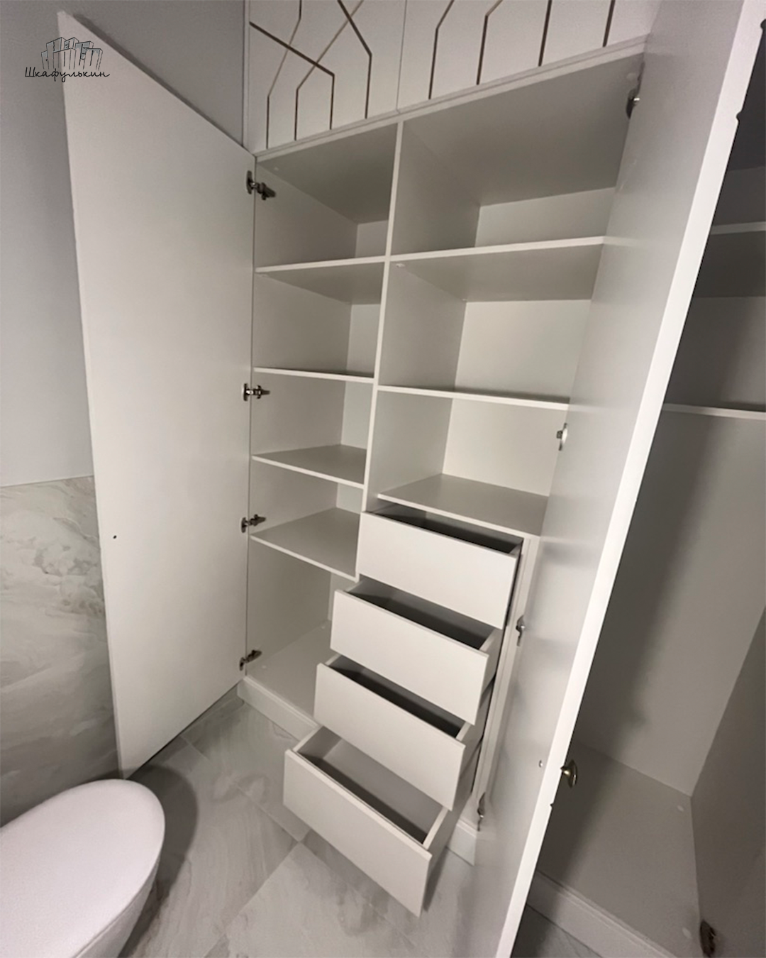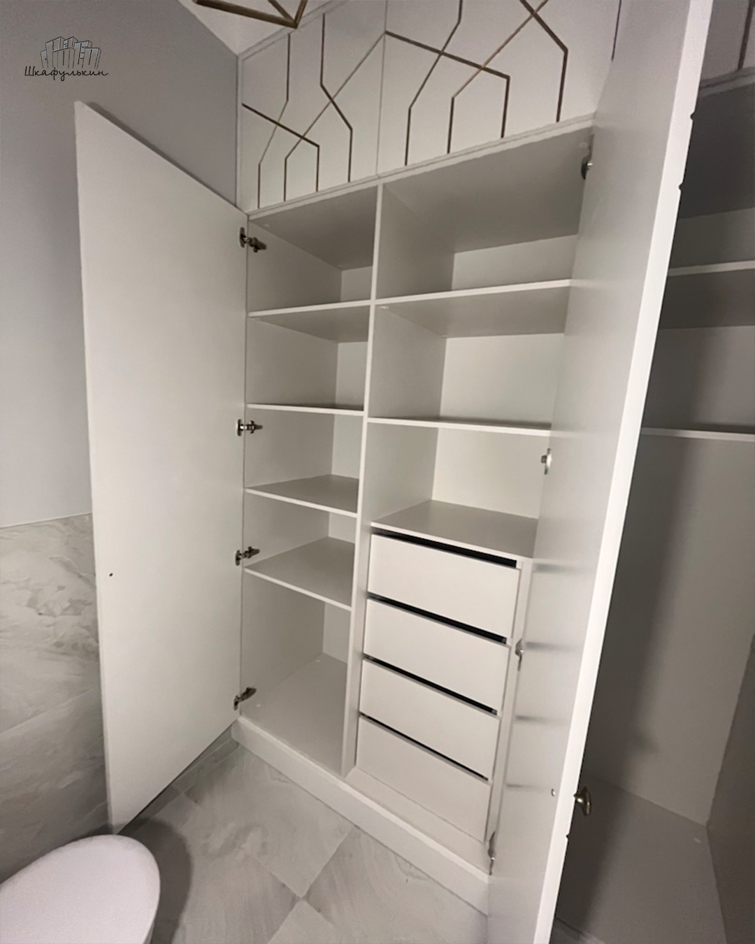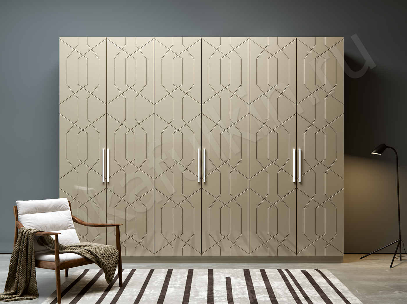 Размер шкафа на фото (Ш/В/Г): 3000/2400/550 мм.