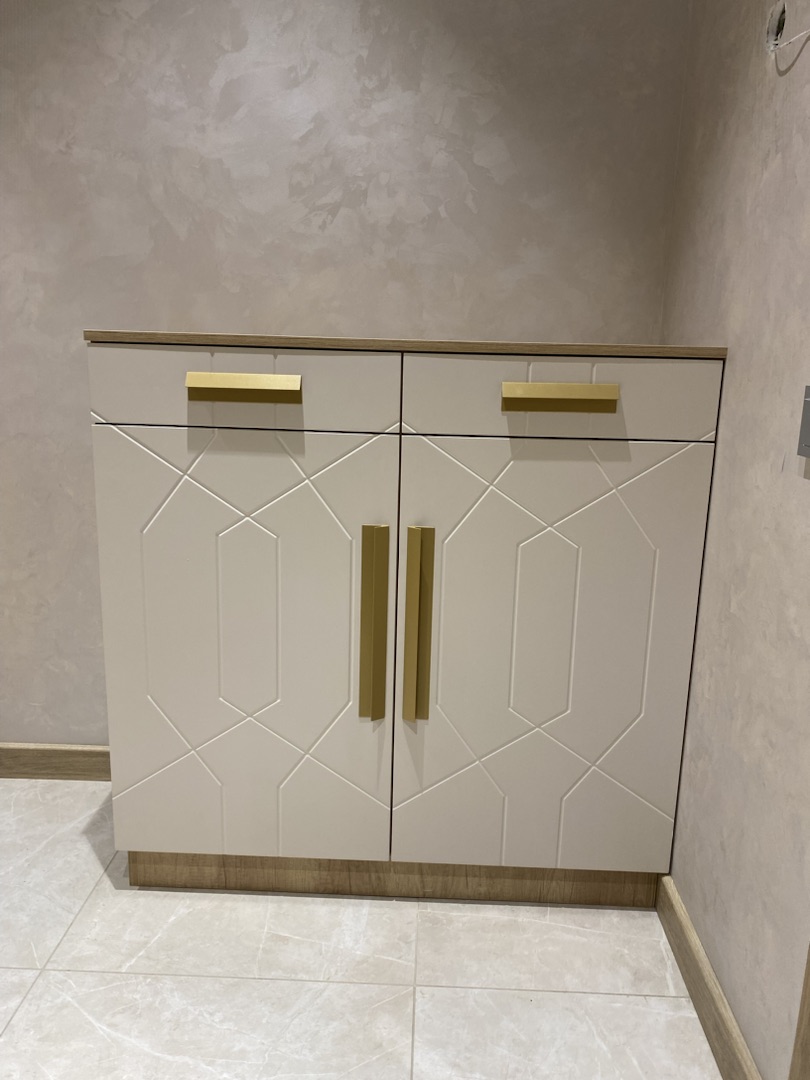 Двери: МДФ - панели с фрезеровкой под покраску, ручки-рейлинги.