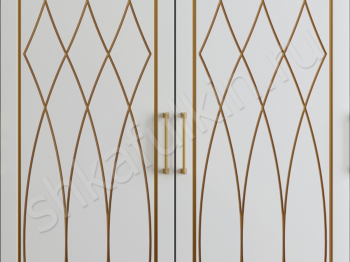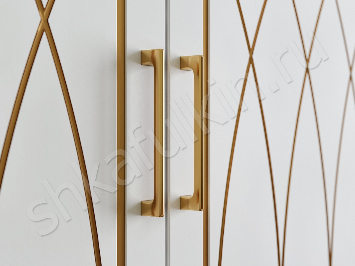 Белый цвет фасадов в сочетании с золотой патиной создают гармоничный акцент в интерьере, не перегружая пространство.