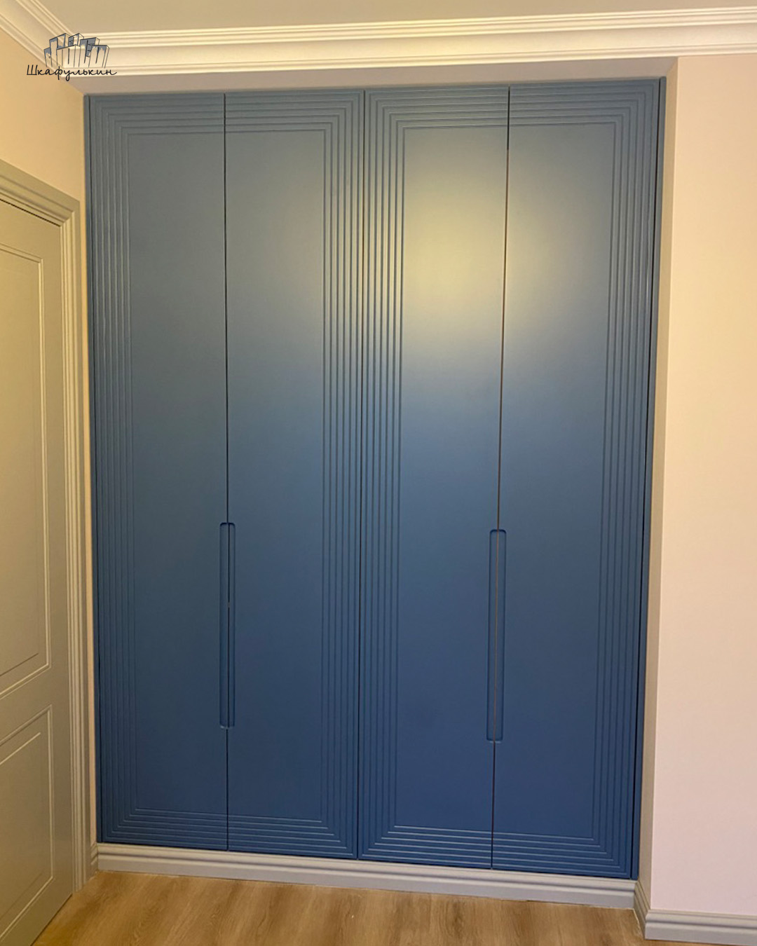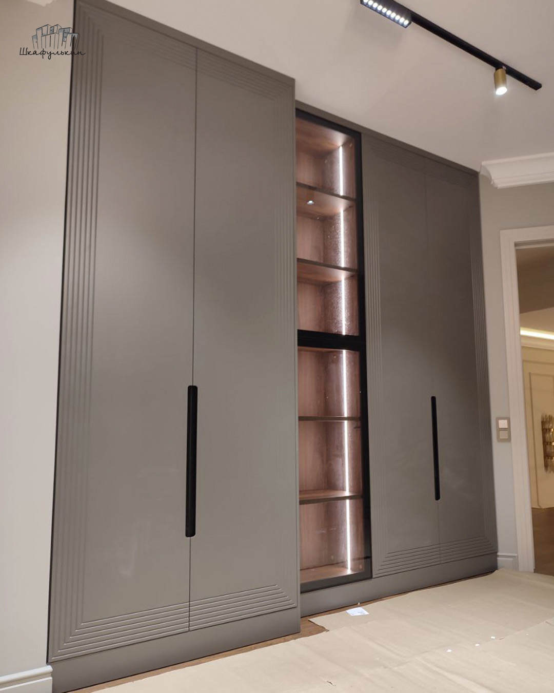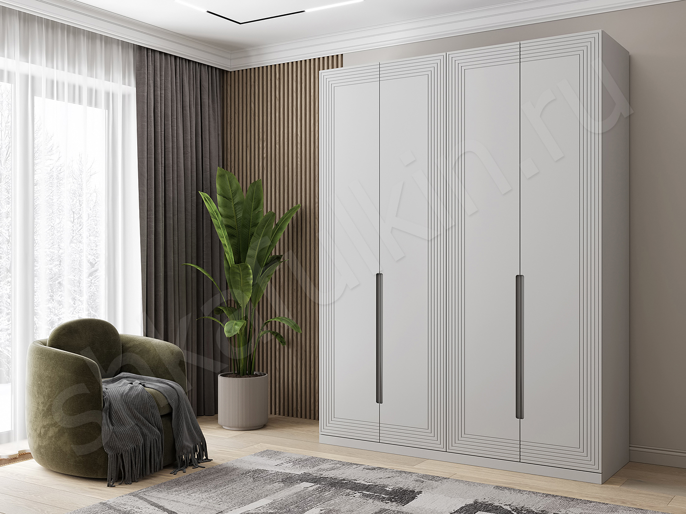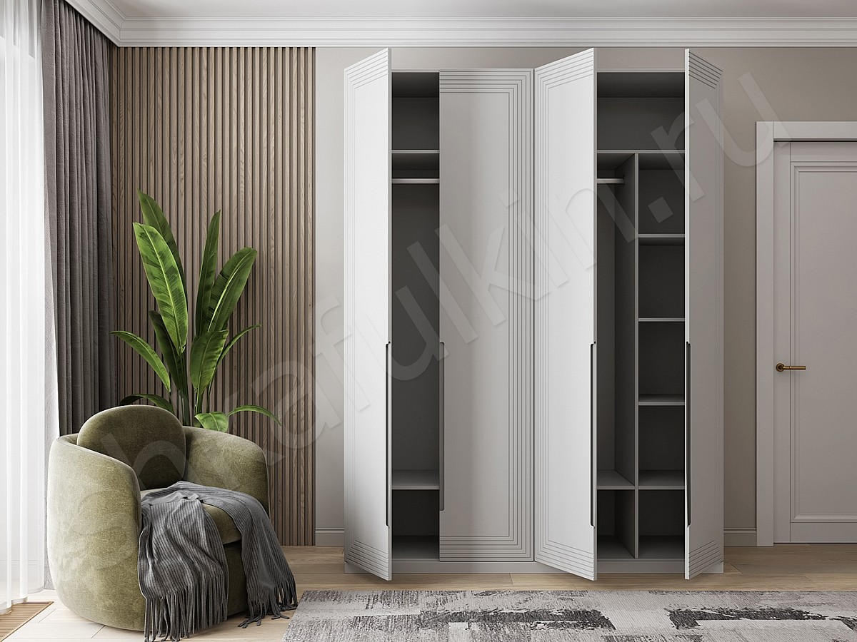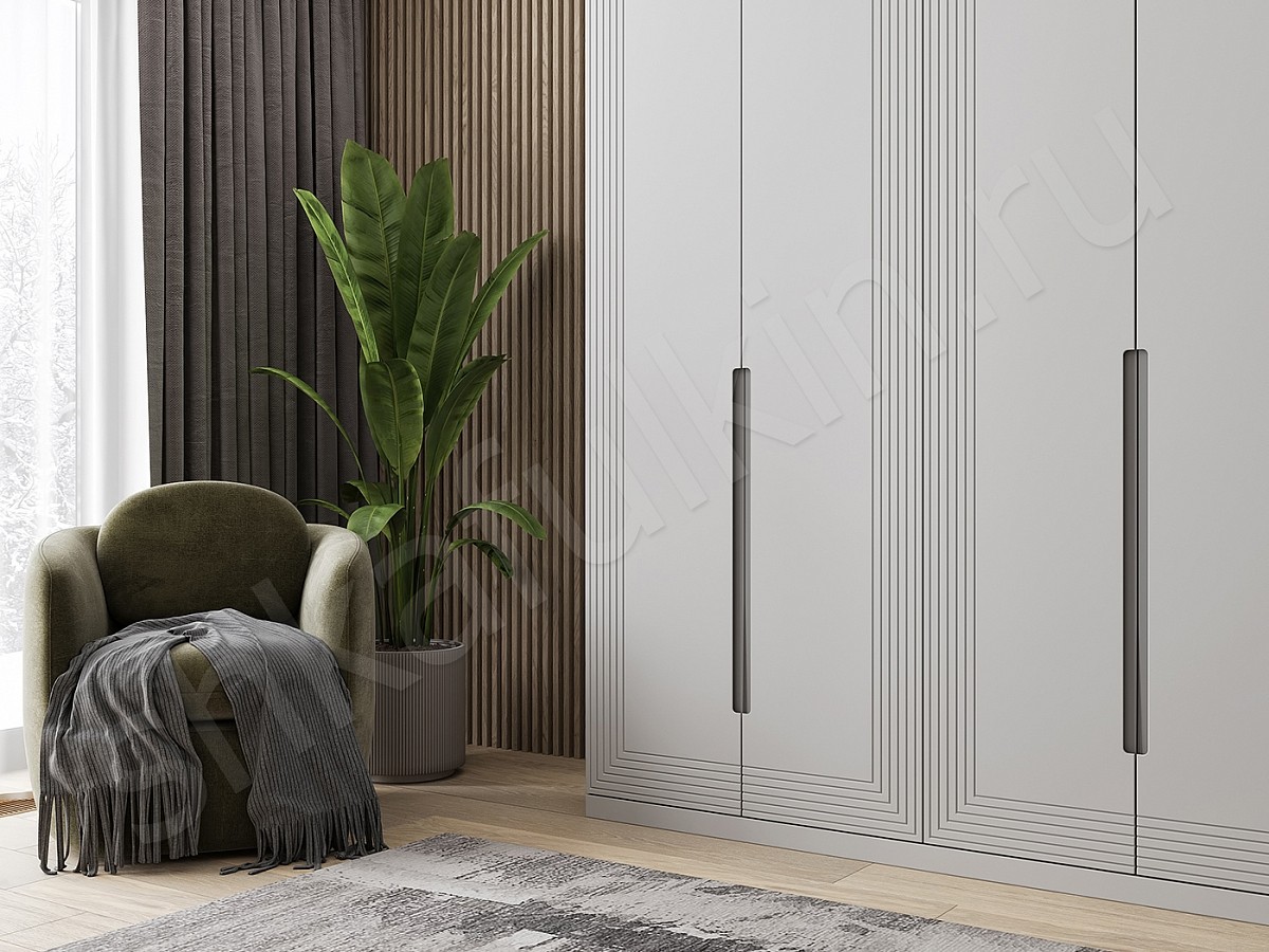 Шкаф «Сильвер» с линейной фрезеровкой и интегрированной ручкой будет главным акцентом вашего интерьера.