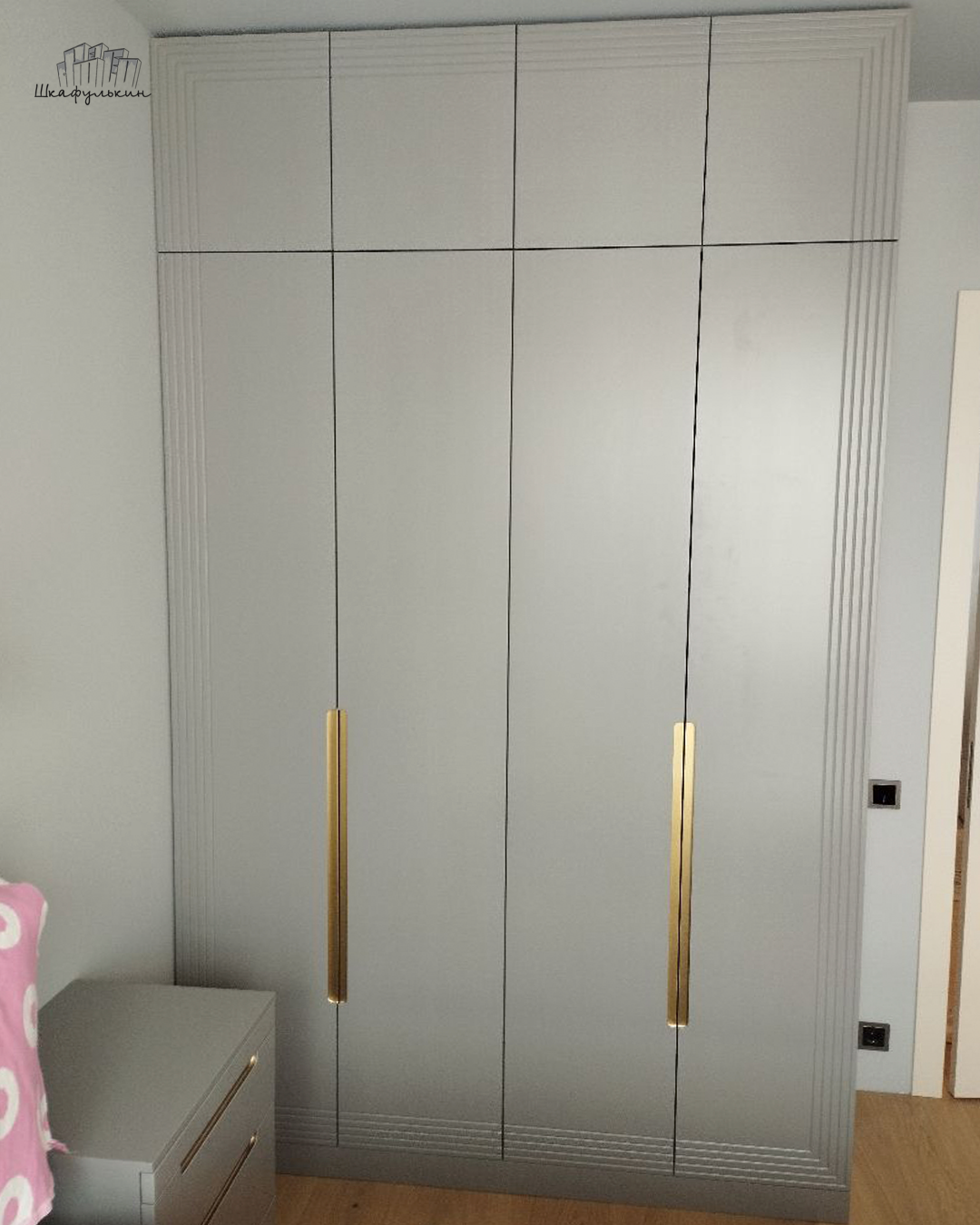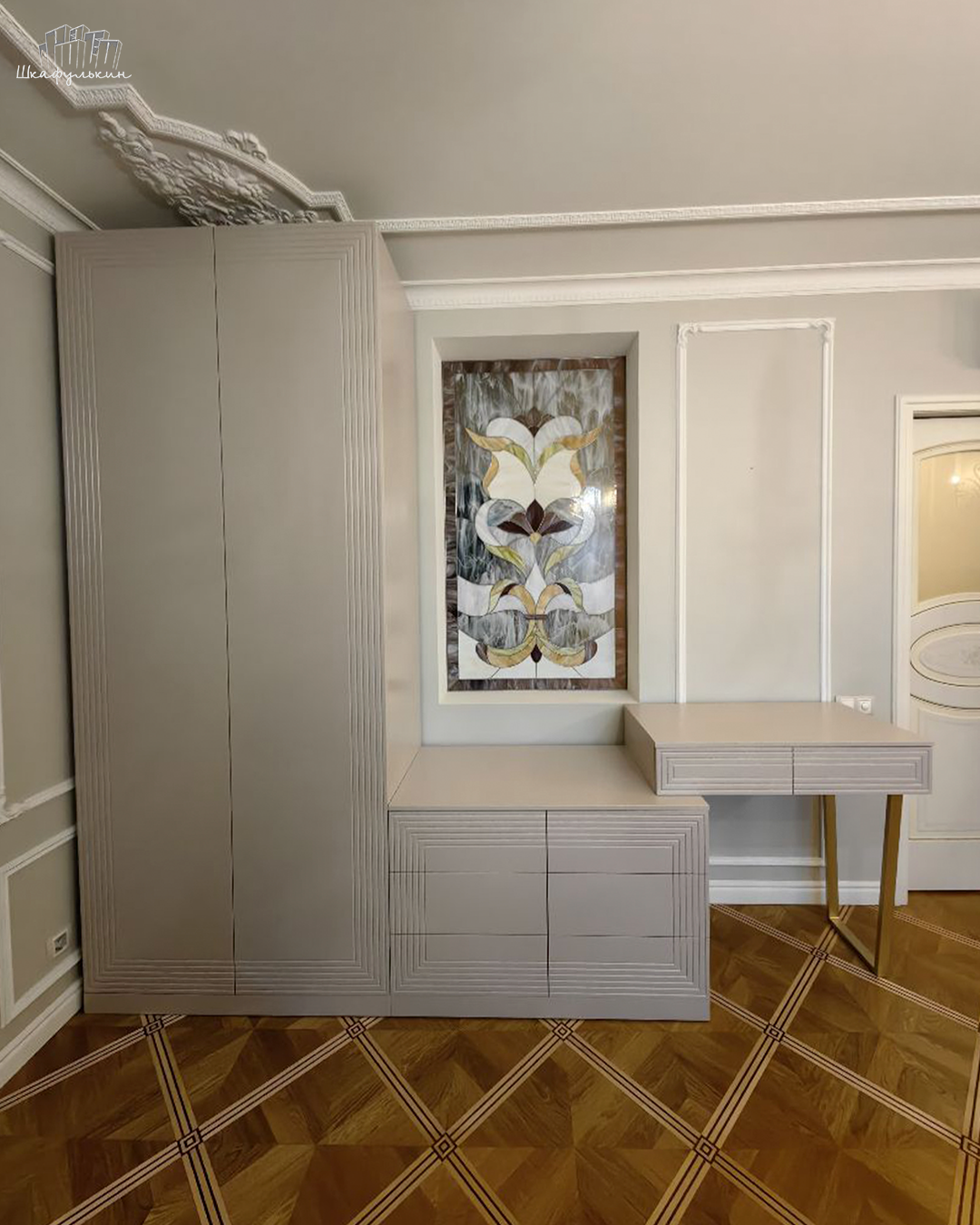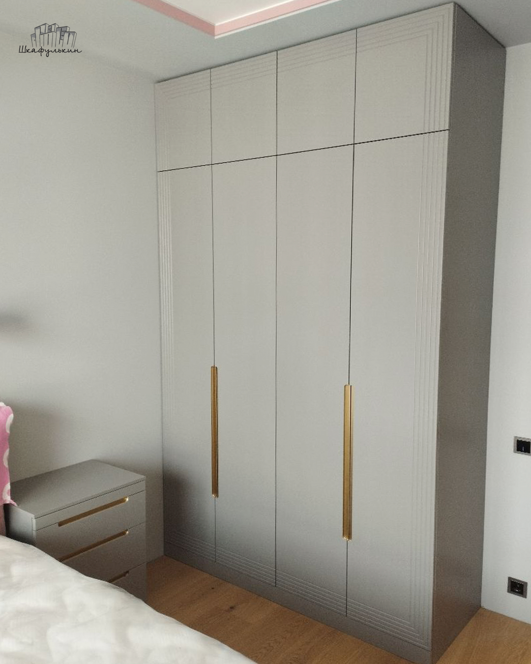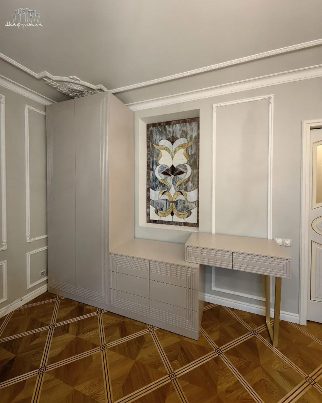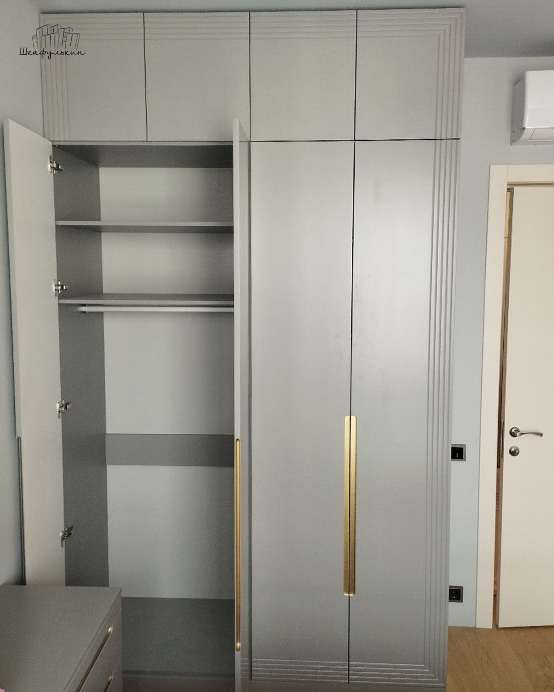 Шкаф «Сильвер» с линейной фрезеровкой и интегрированной ручкой будет главным акцентом вашего интерьера.