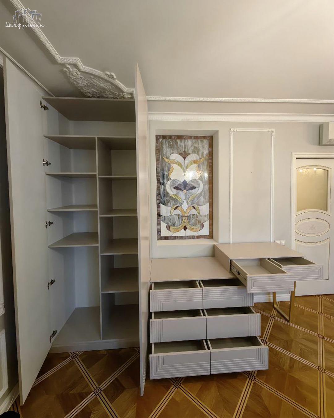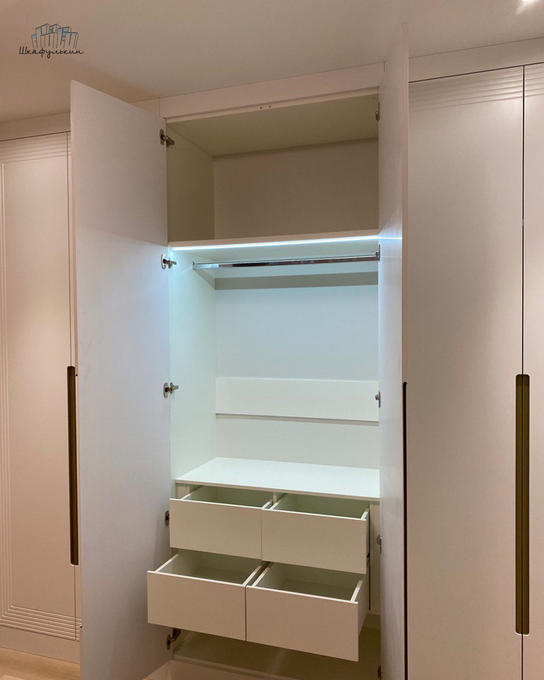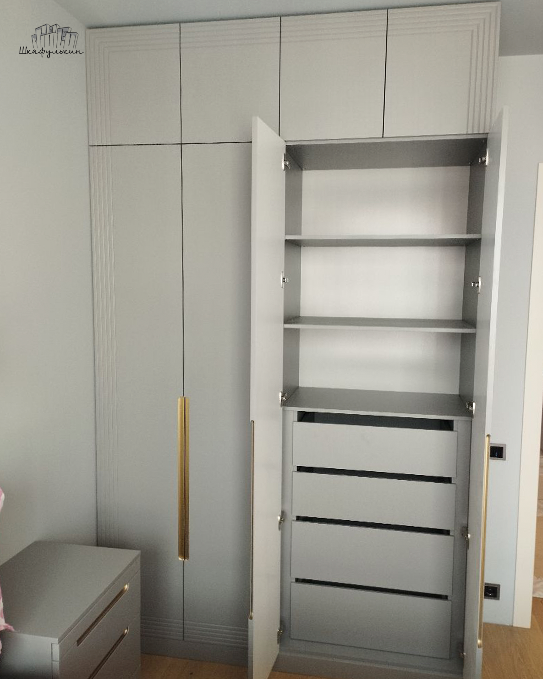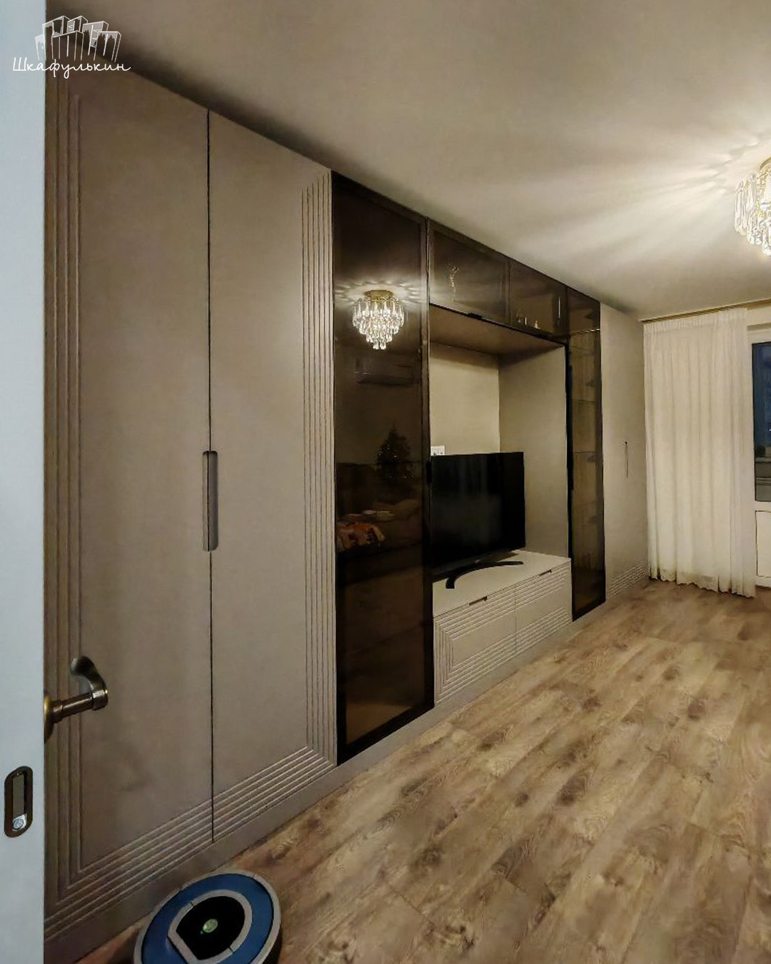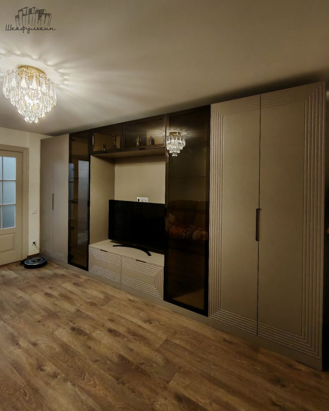 Шкаф «Сильвер» с линейной фрезеровкой и интегрированной ручкой будет главным акцентом вашего интерьера.