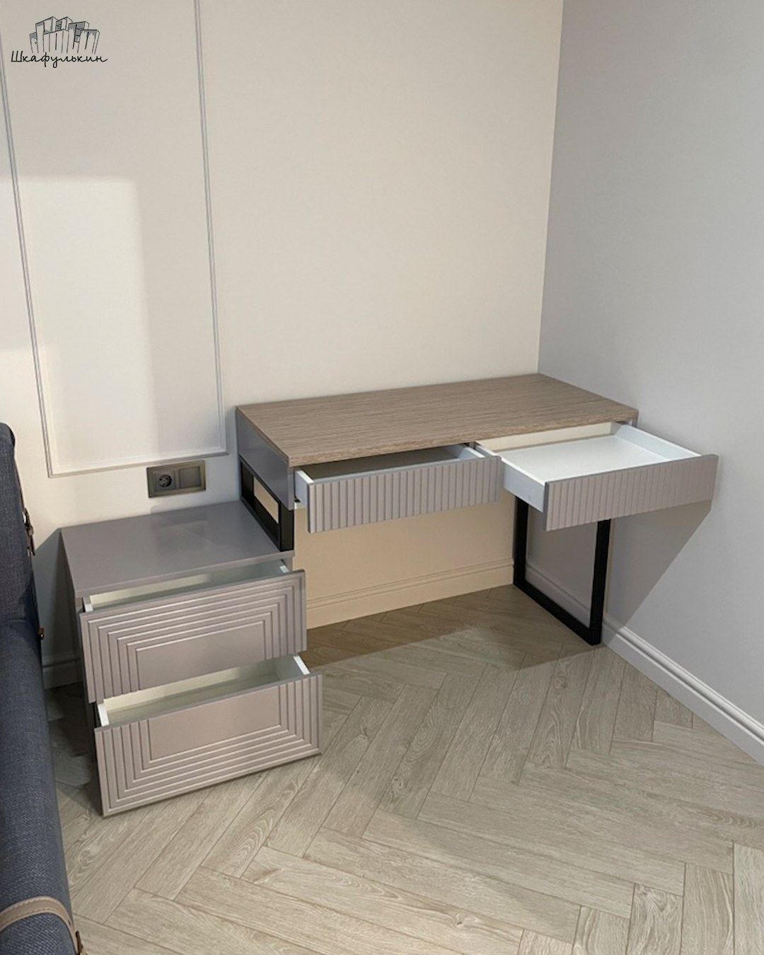 Фасады: МДФ с фрезеровкой, крашенная NCS.