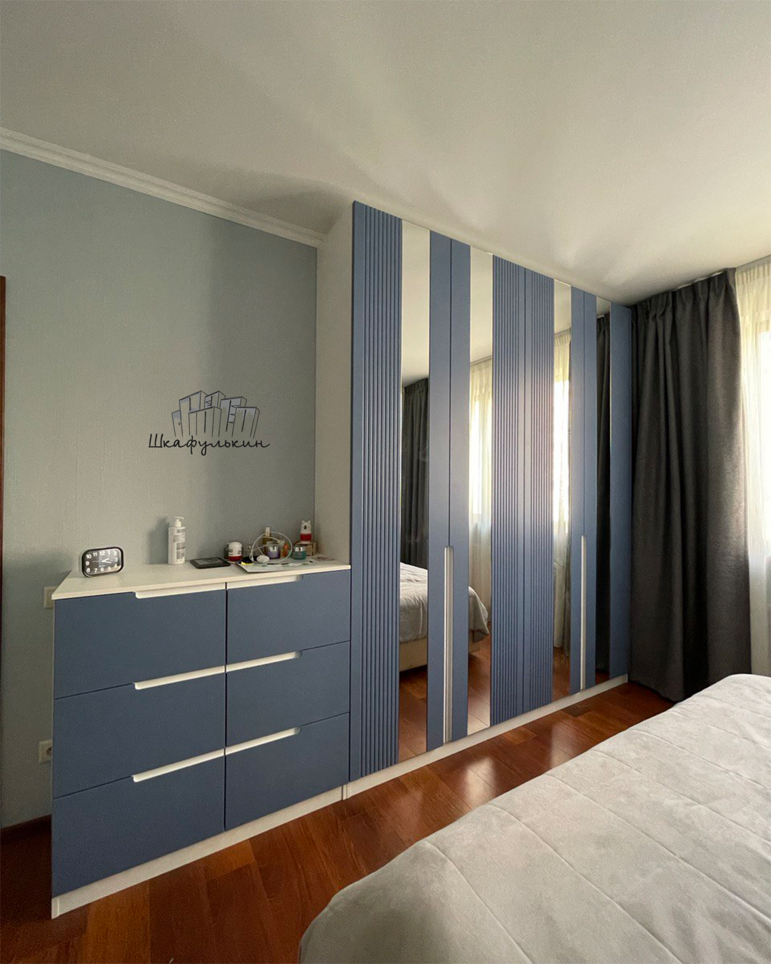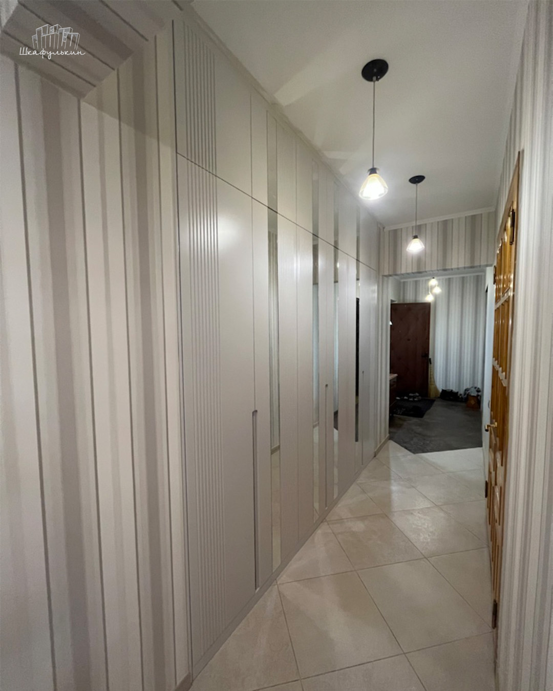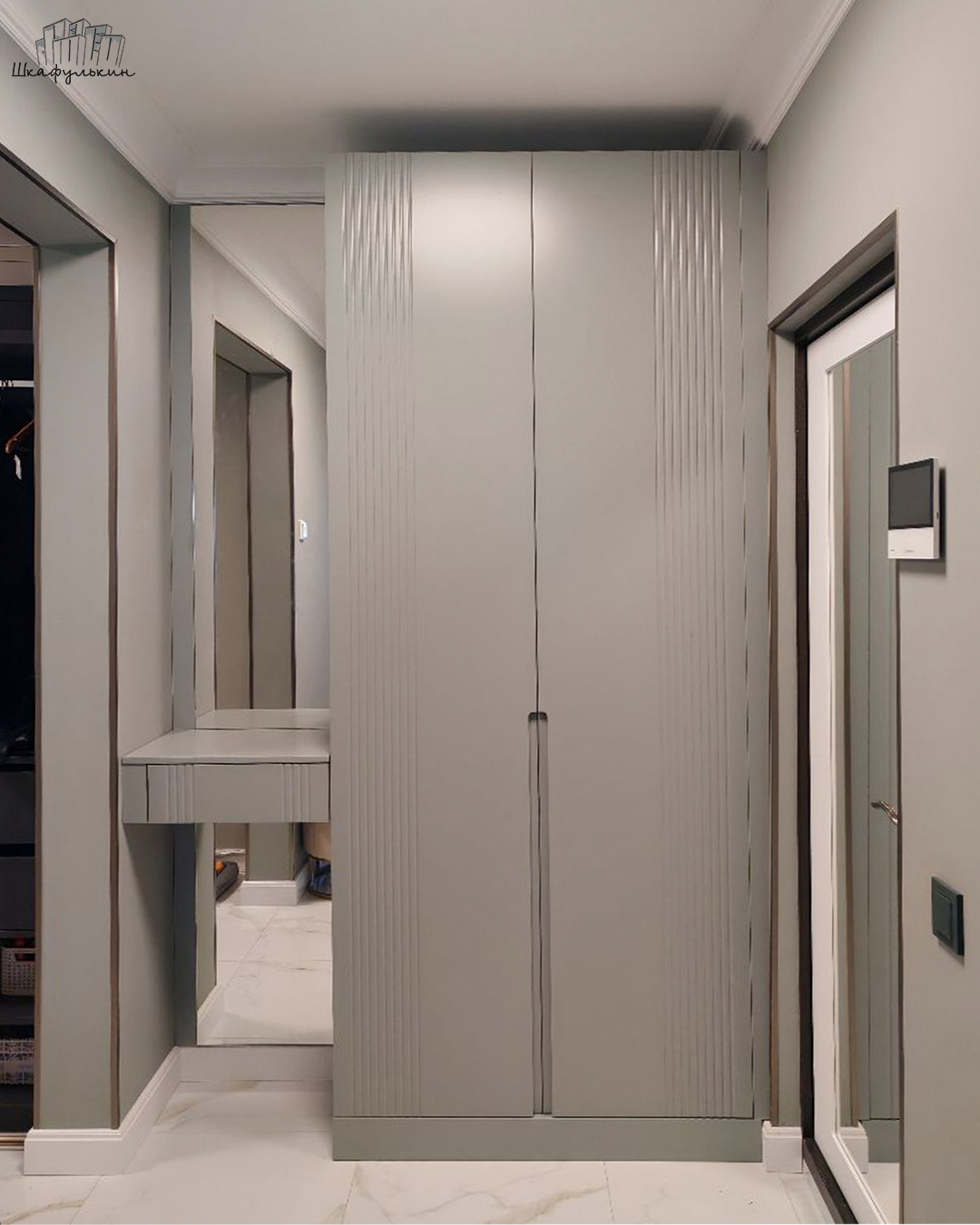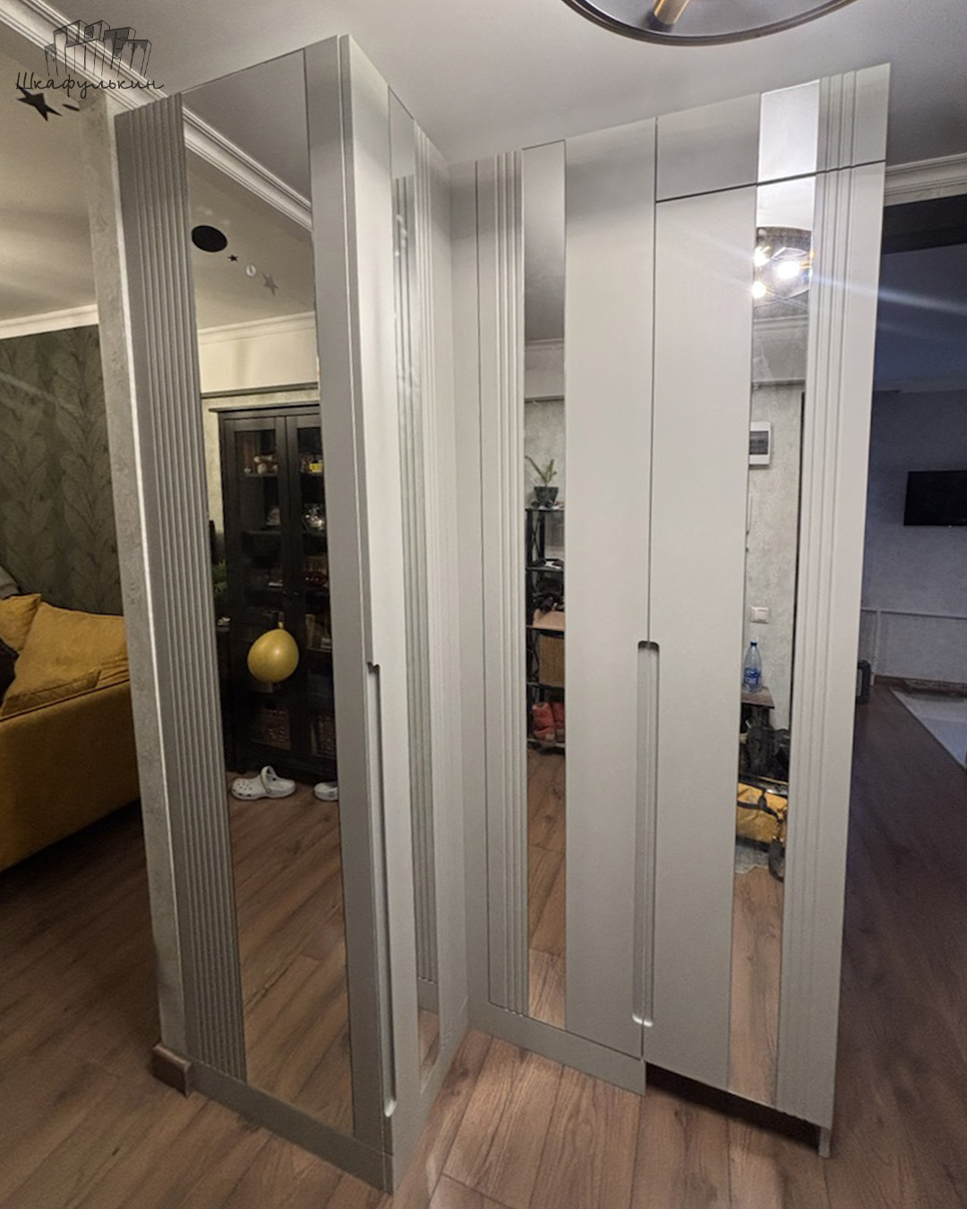 Фасады: МДФ крашенная по RAL с фрезеровкой, вставка зеркало.