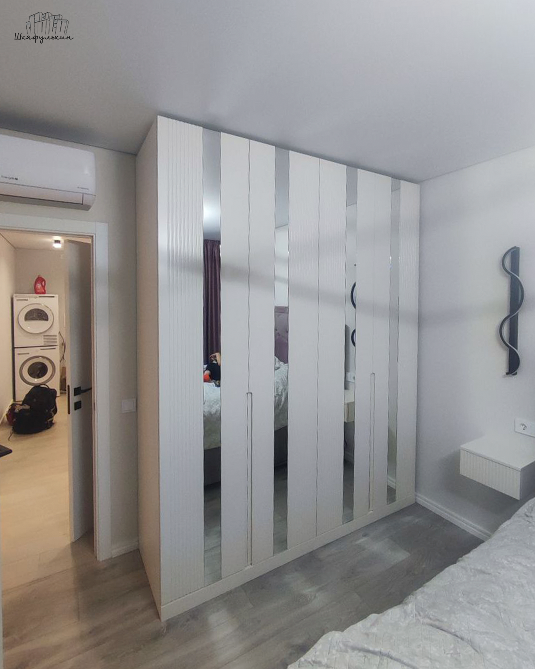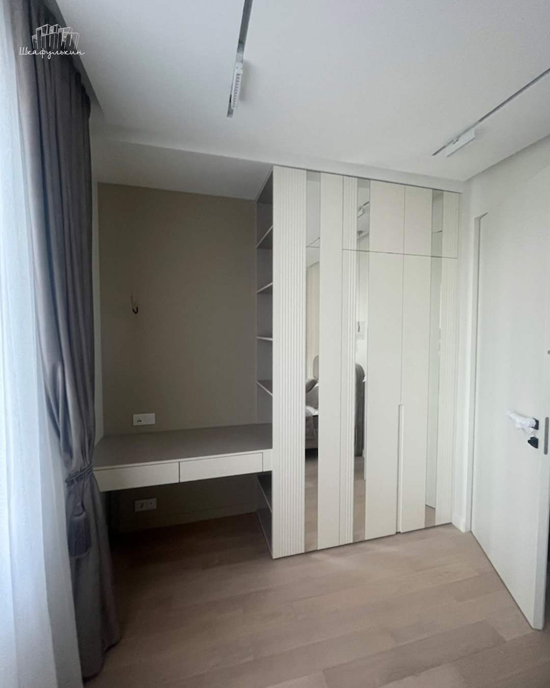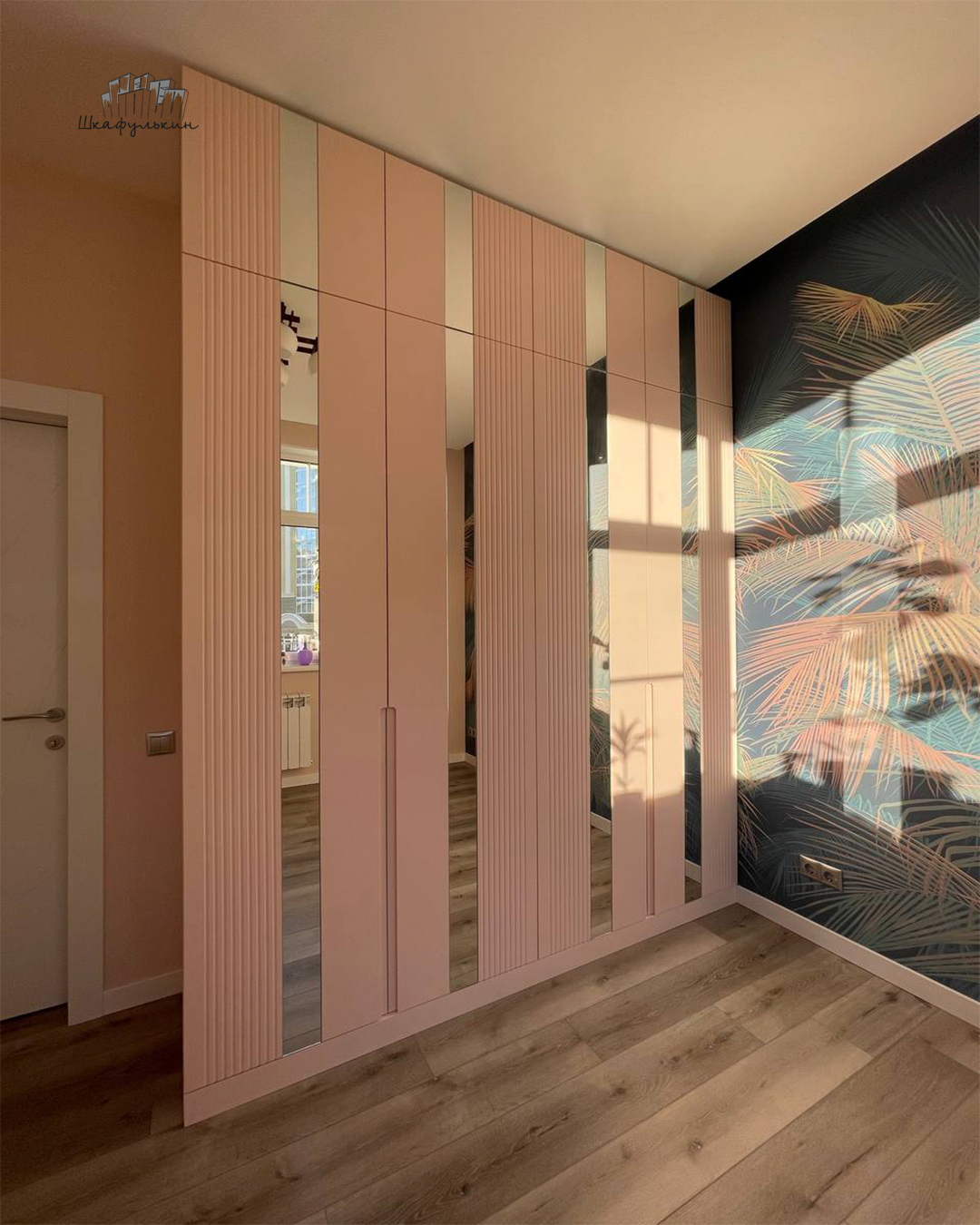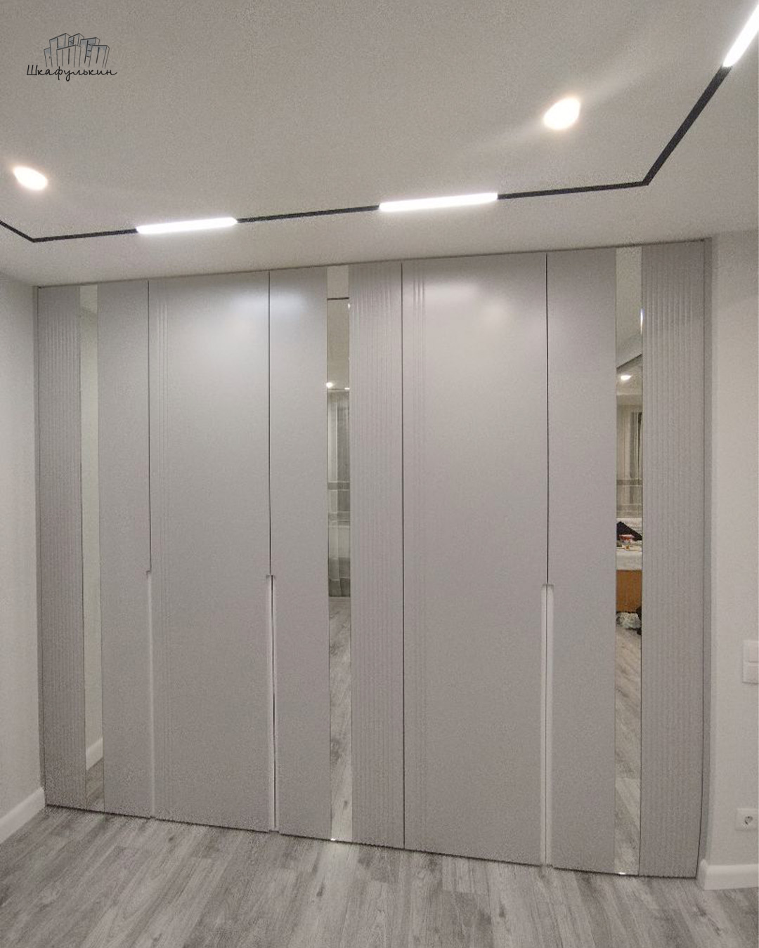 Фасады: МДФ крашенная по RAL с фрезеровкой, вставка зеркало.