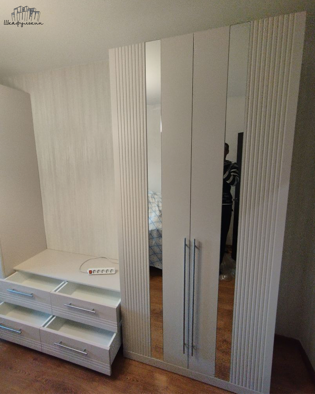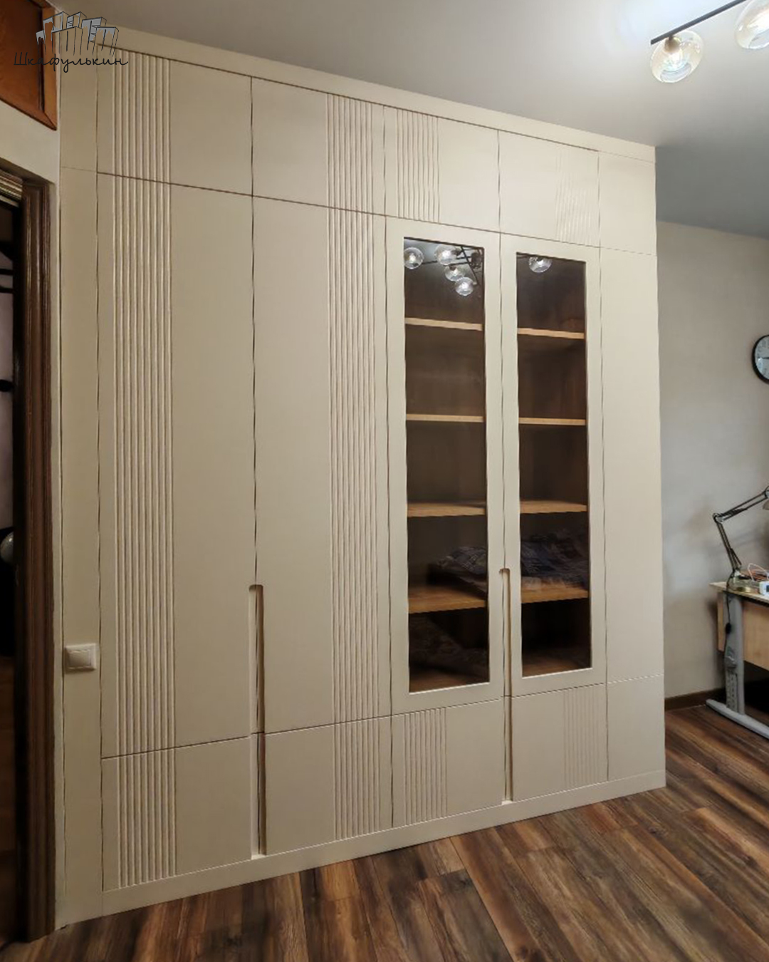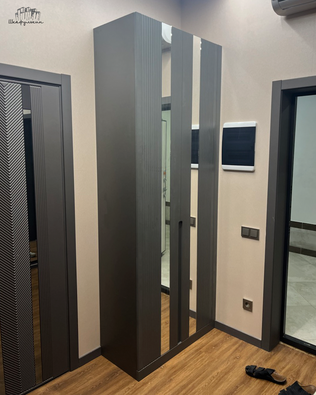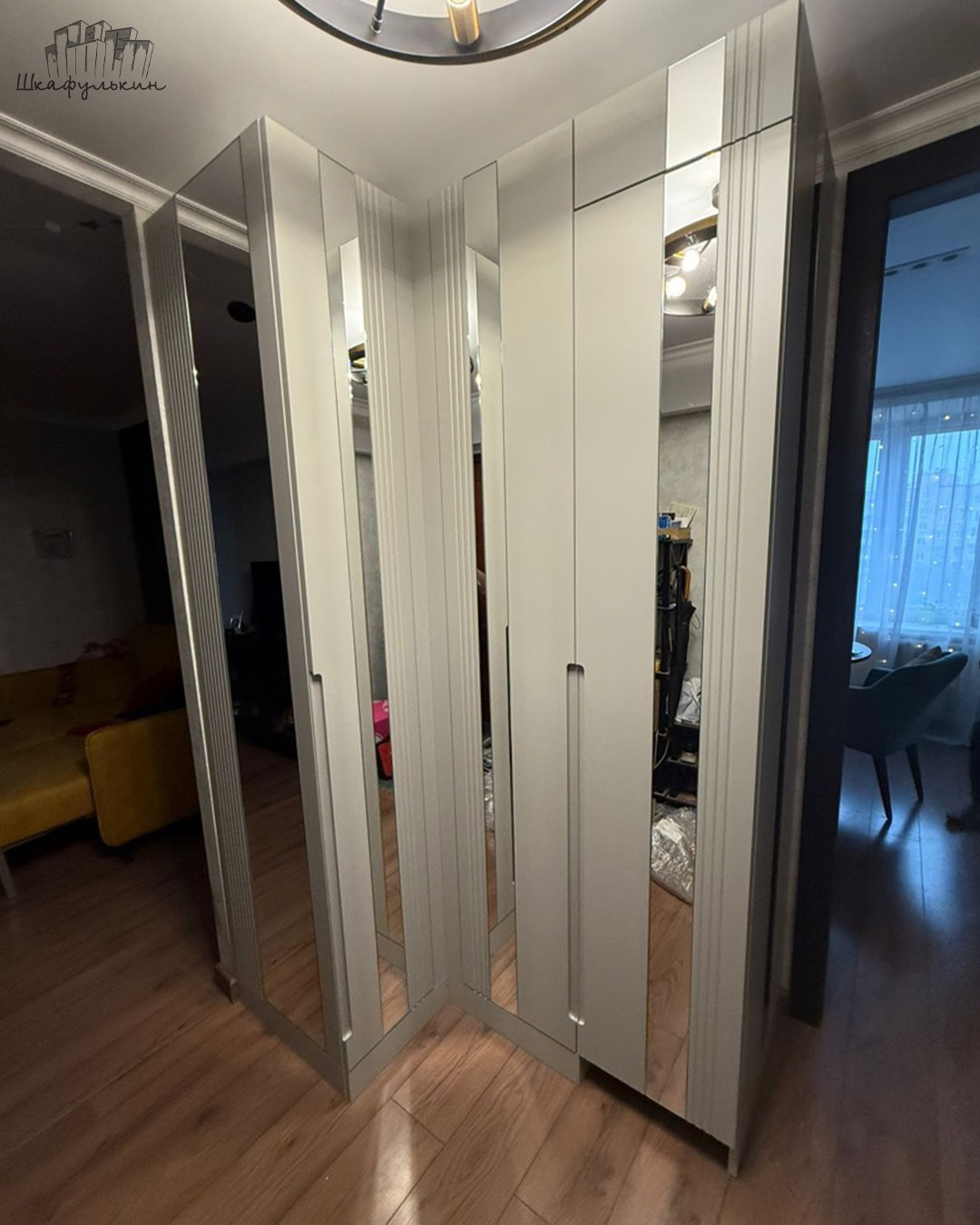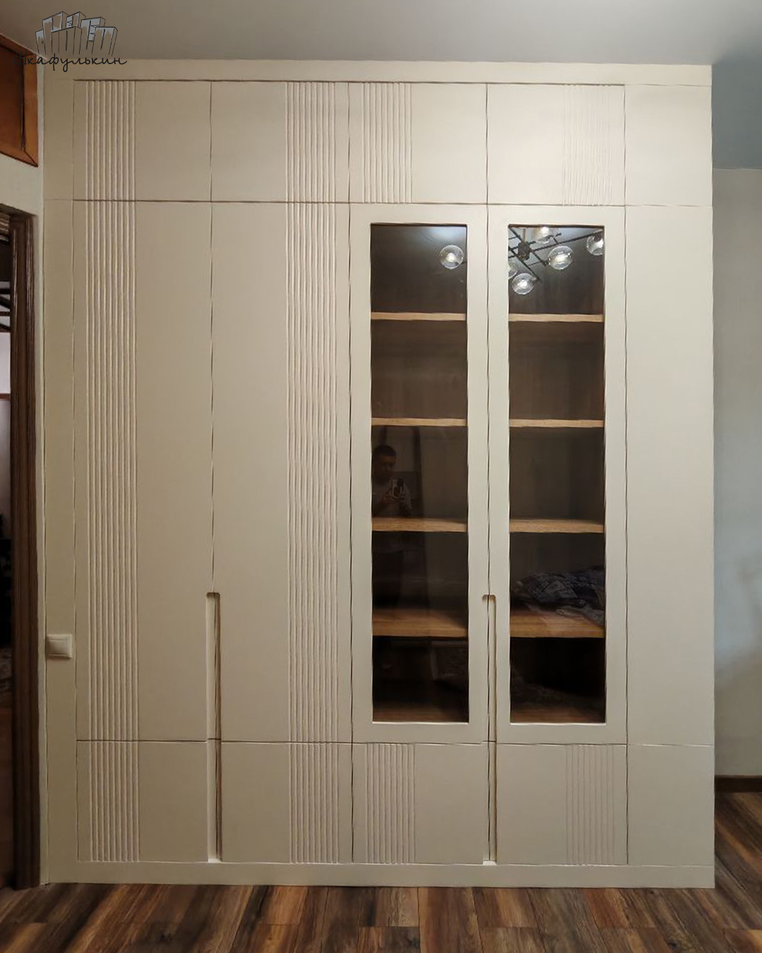 Фасады: МДФ крашенная по RAL с фрезеровкой, вставка зеркало.