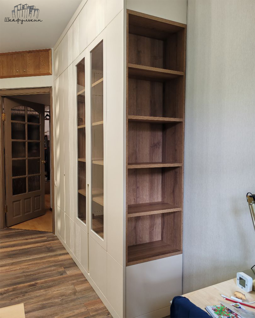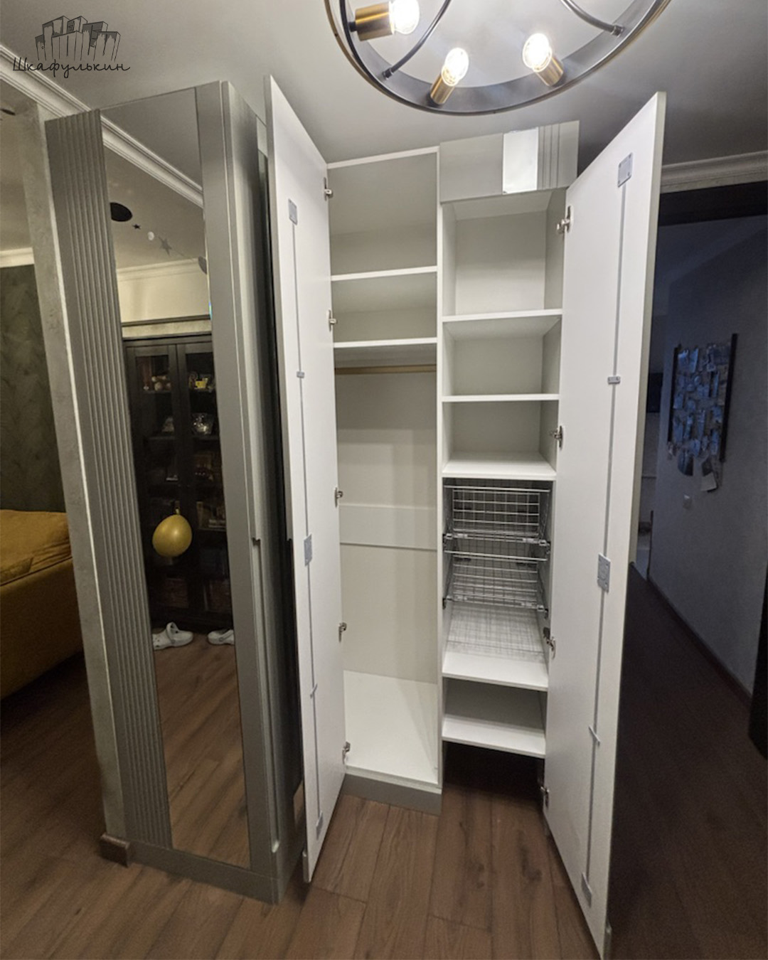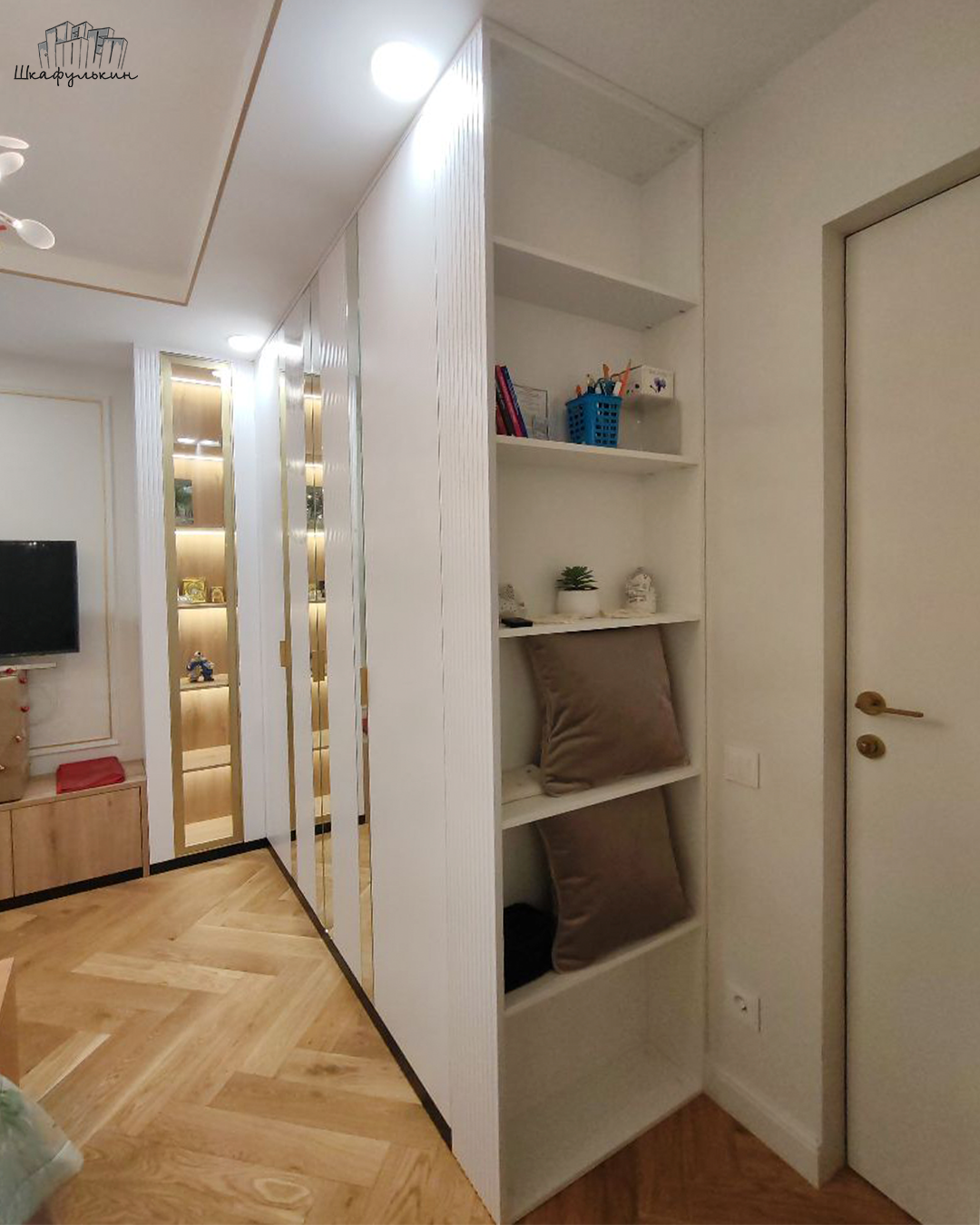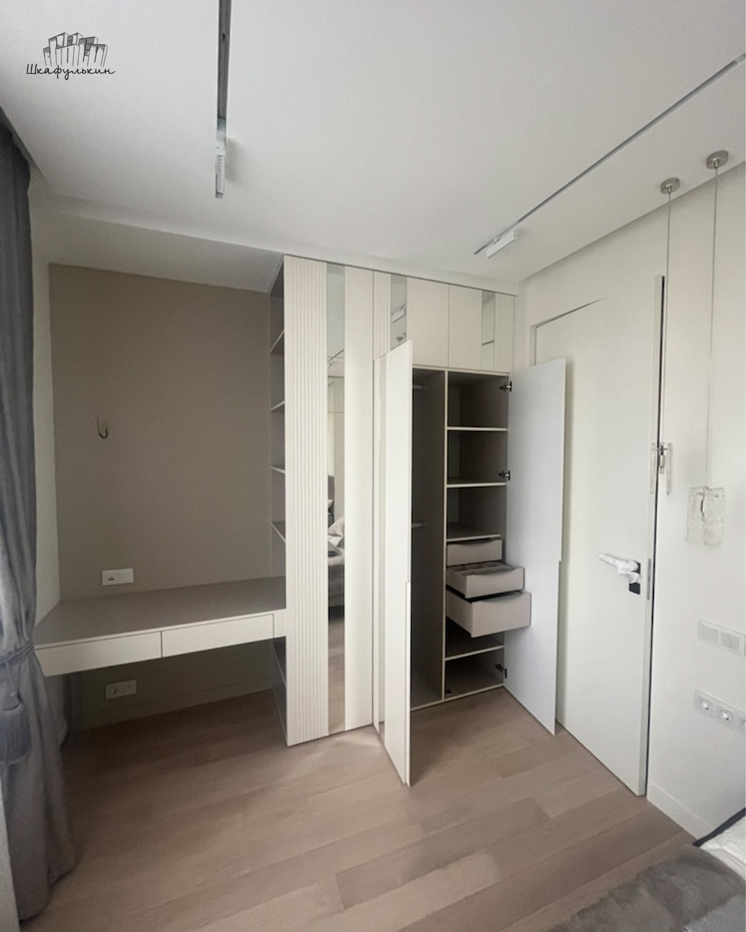 Фасады: МДФ крашенная по RAL с фрезеровкой, вставка зеркало.